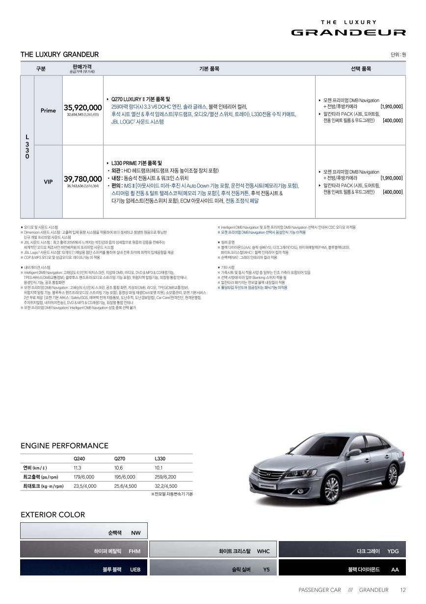 2010년 12월 그랜져TG (더럭셔리 그랜져) 신차가격표