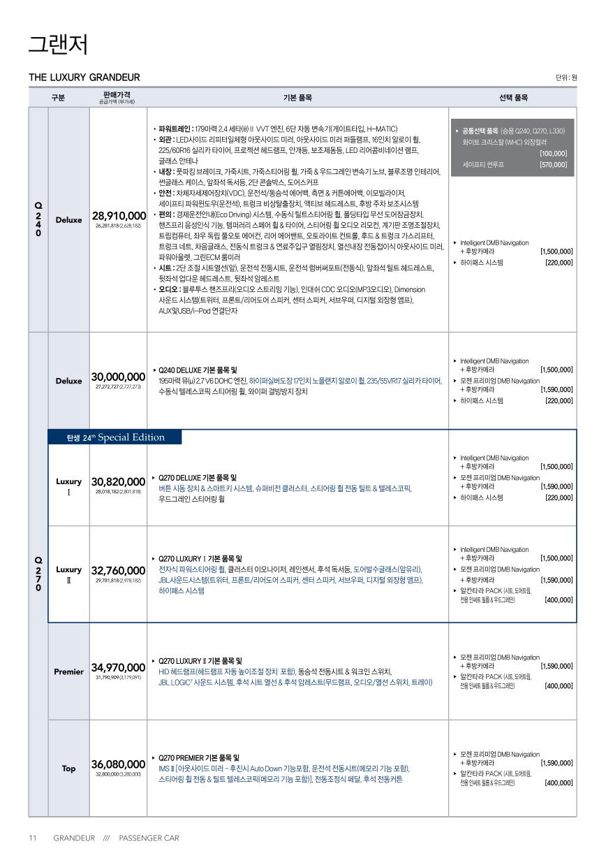※ 본 가격표의 모든 저작권은 해당 차량 제조사에 있습니다.