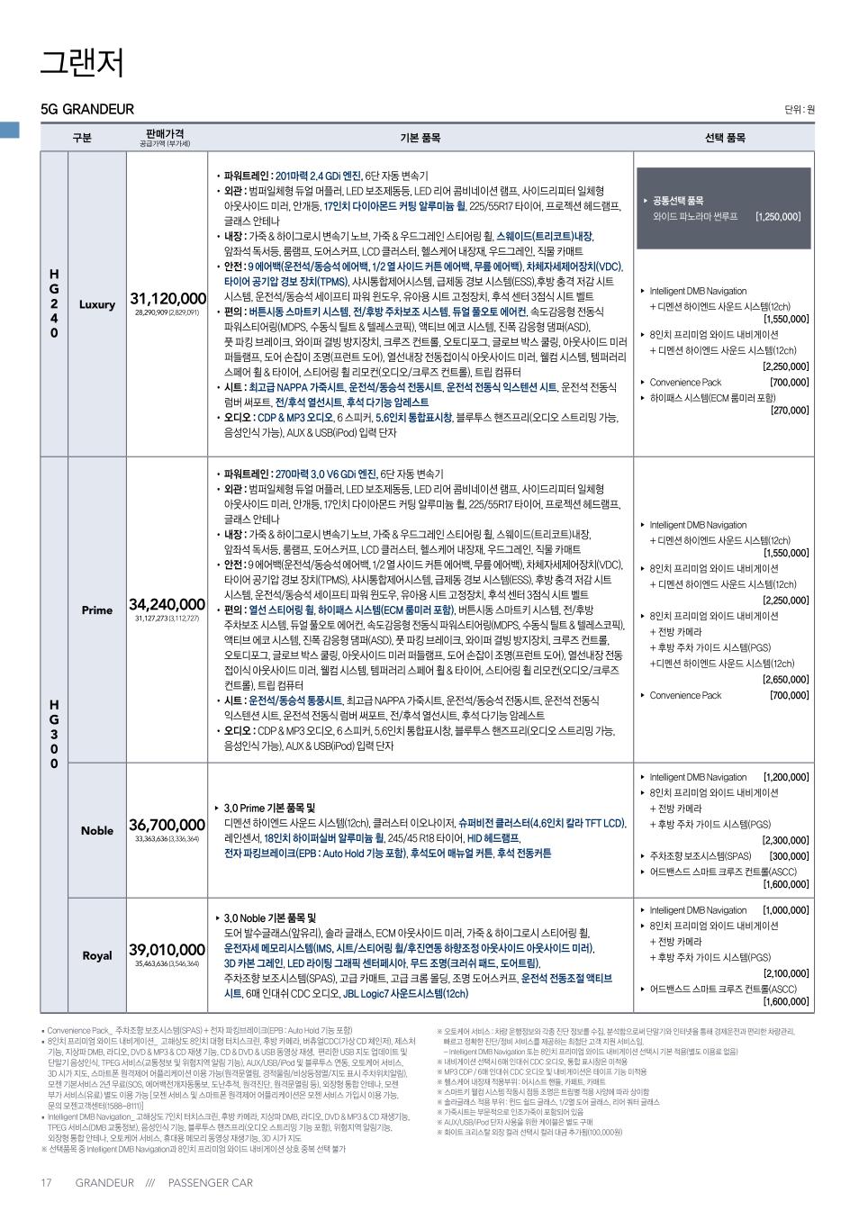 ※ 본 가격표의 모든 저작권은 해당 차량 제조사에 있습니다.
