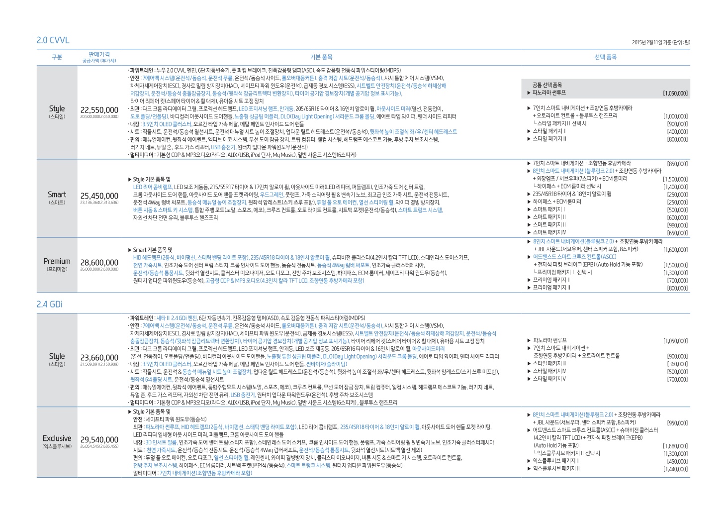 2015년 7월 LF 쏘나타 신차가격표 (1.6터보, 1.7디젤, PHEV 발매)