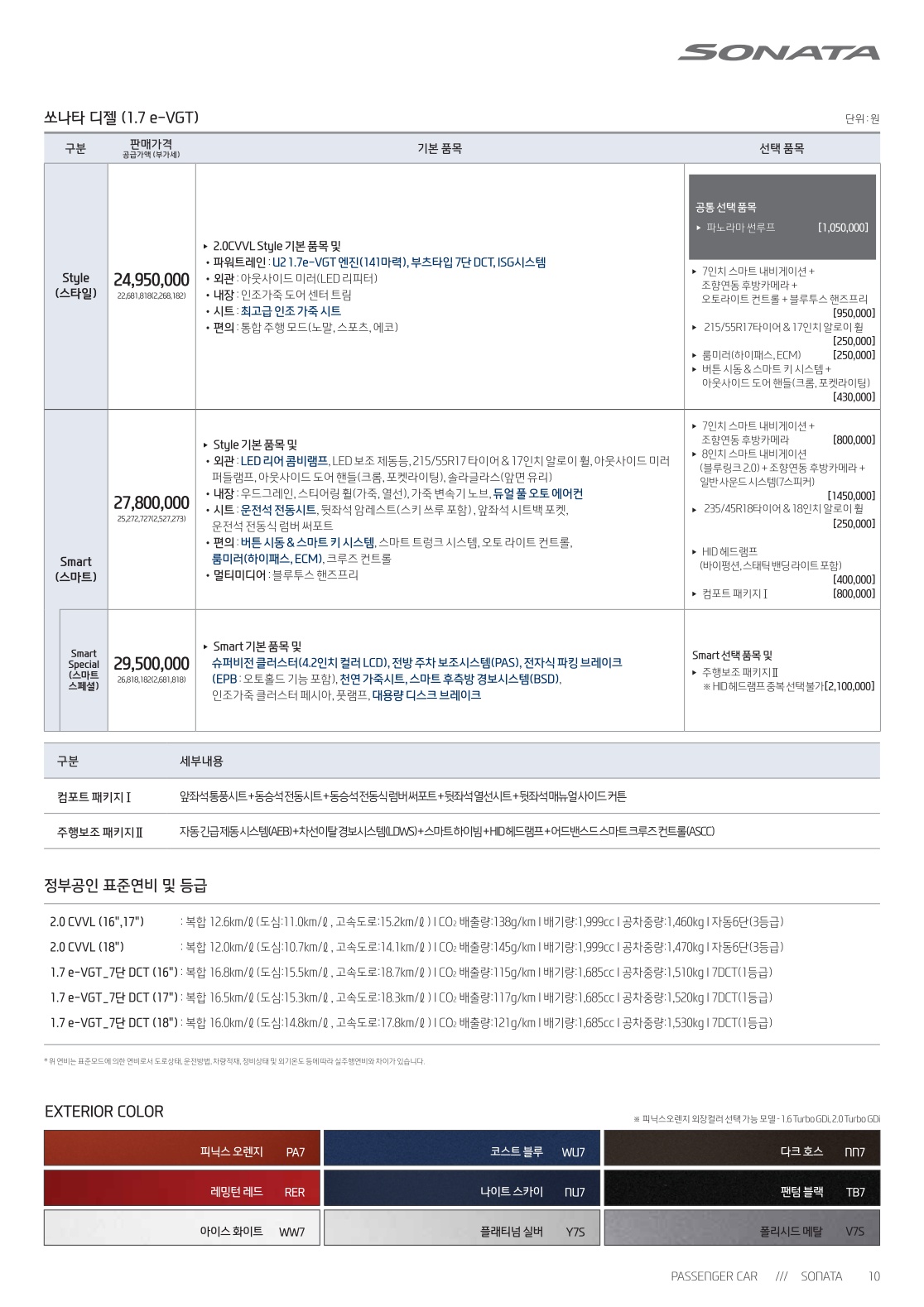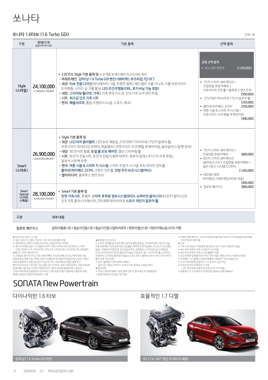 2015년 7월 LF 쏘나타 신차가격표 (1.6터보, 1.7디젤, PHEV 발매)