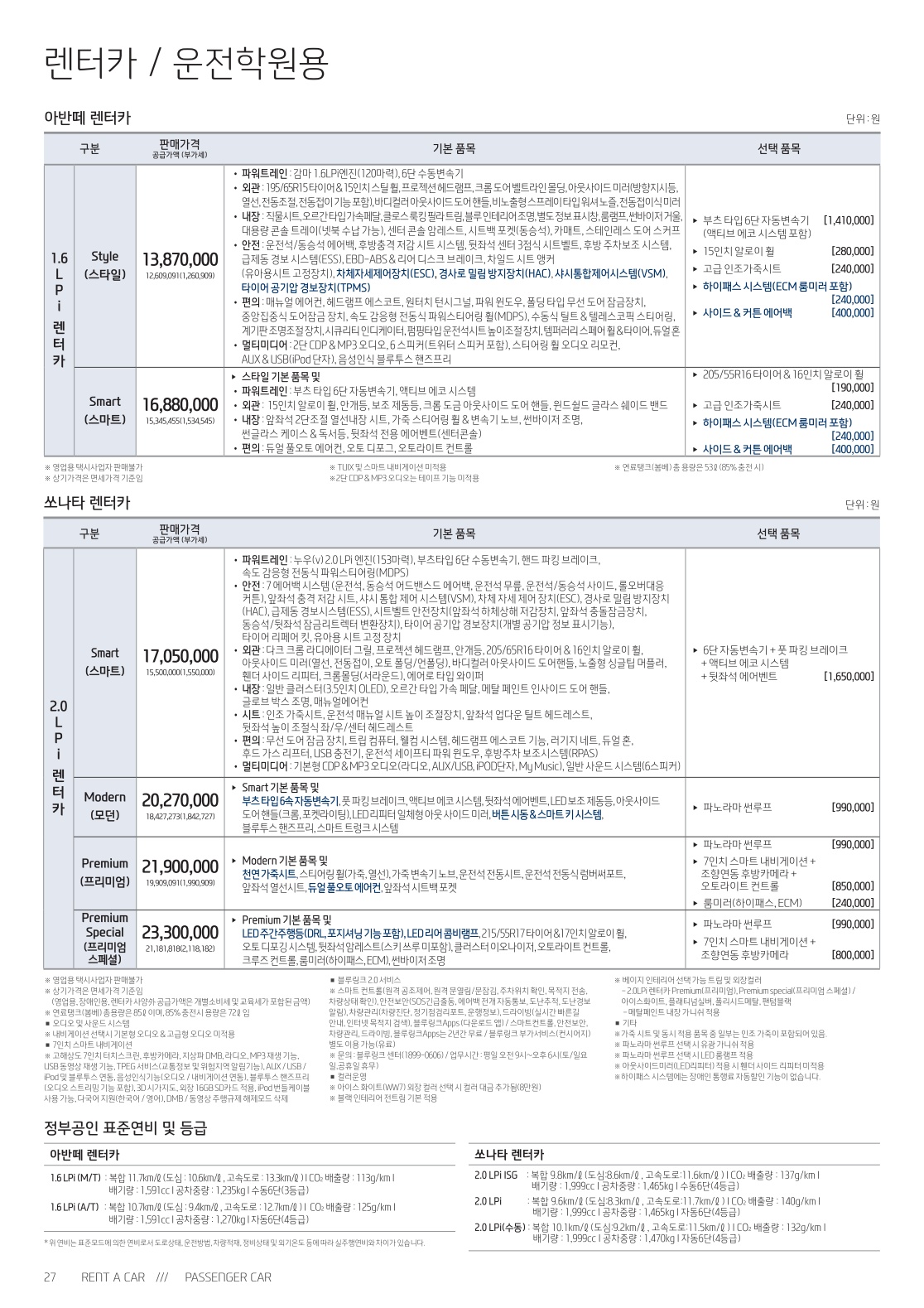 ※ 본 가격표의 모든 저작권은 해당 차량 제조사에 있습니다.