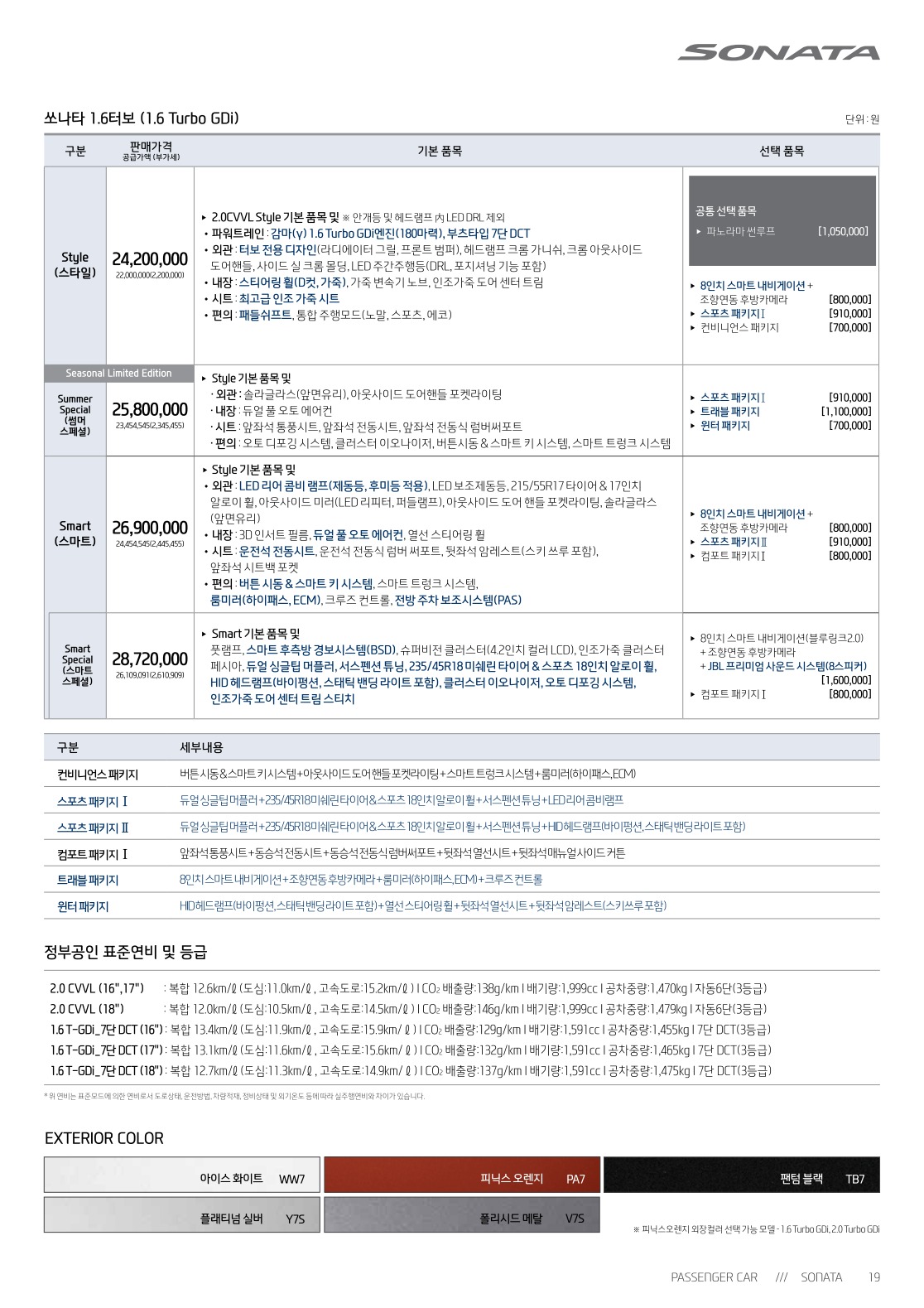 2016년 7월 쏘나타 신차가격표