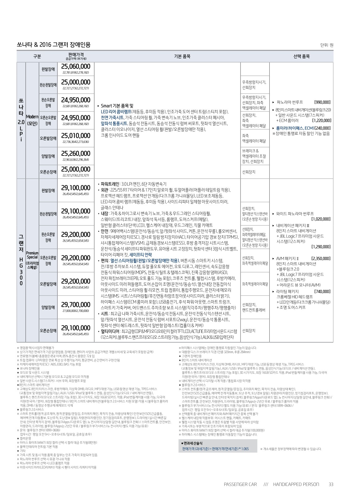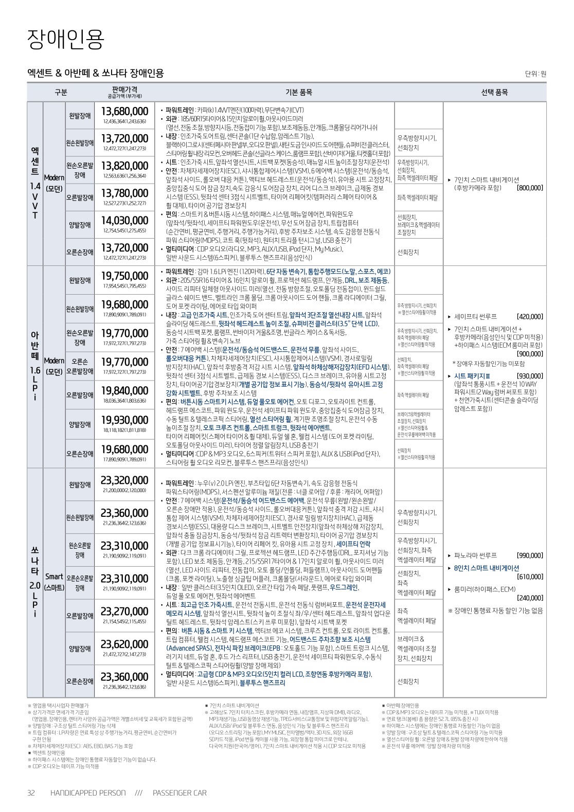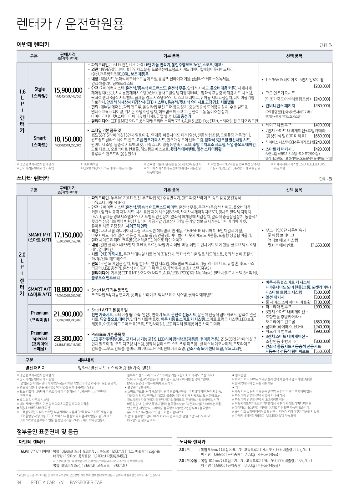 ※ 본 가격표의 모든 저작권은 해당 차량 제조사에 있습니다.
