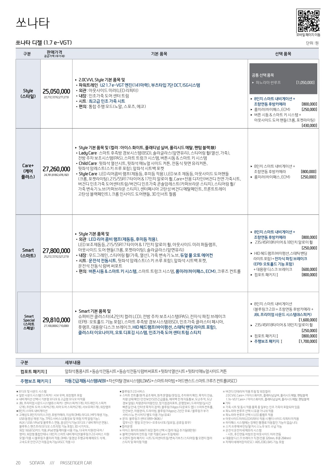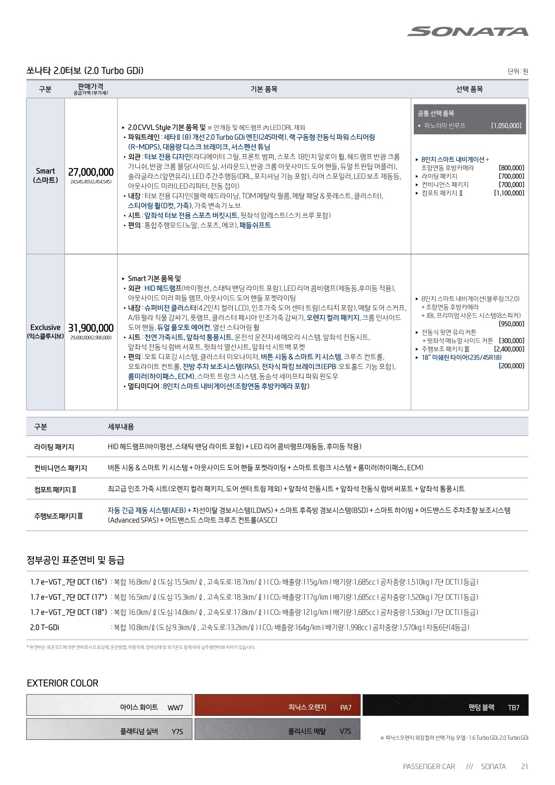 2016년 11월 쏘나타 신차가격표