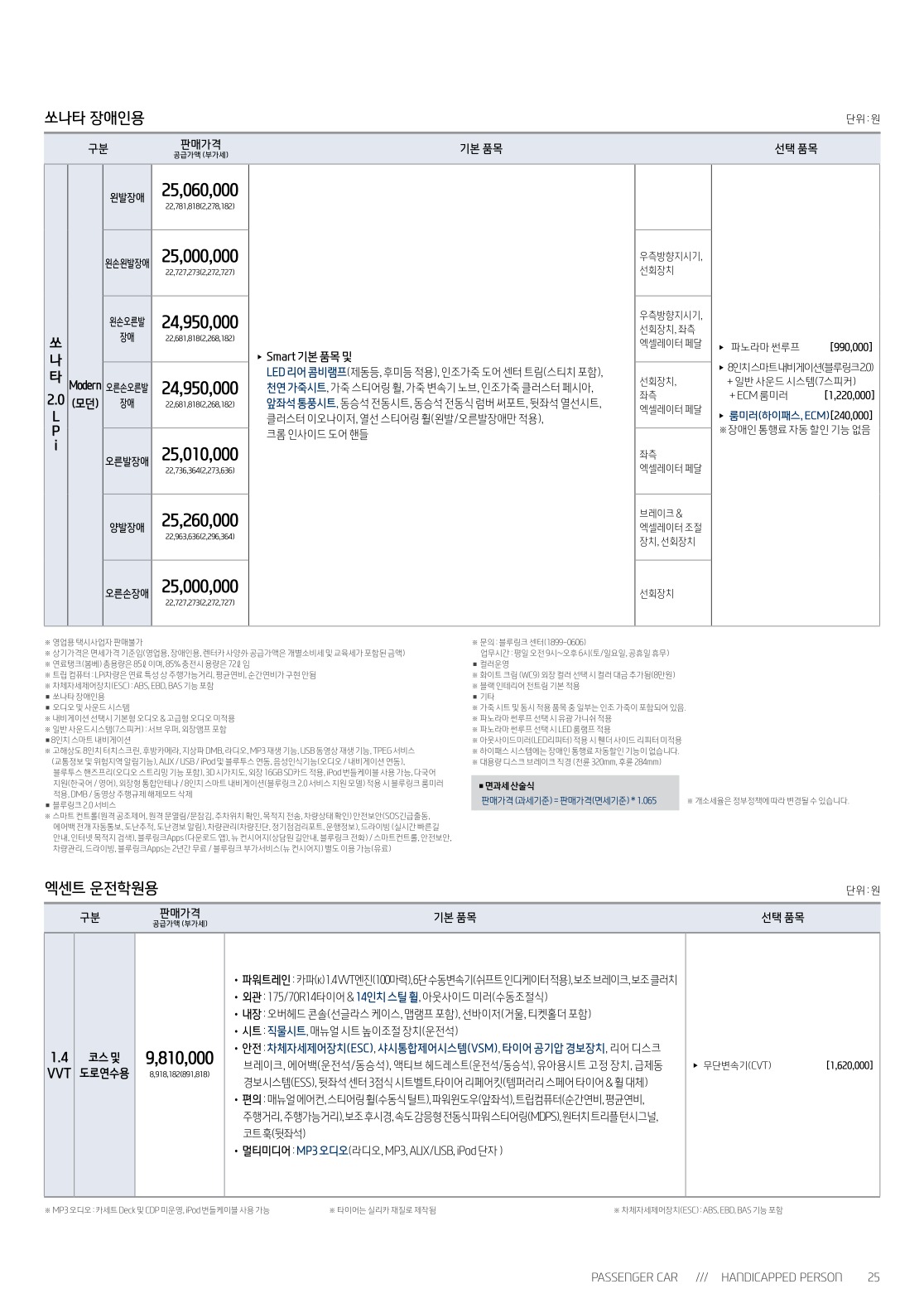 ※ 본 가격표의 모든 저작권은 해당 차량 제조사에 있습니다.