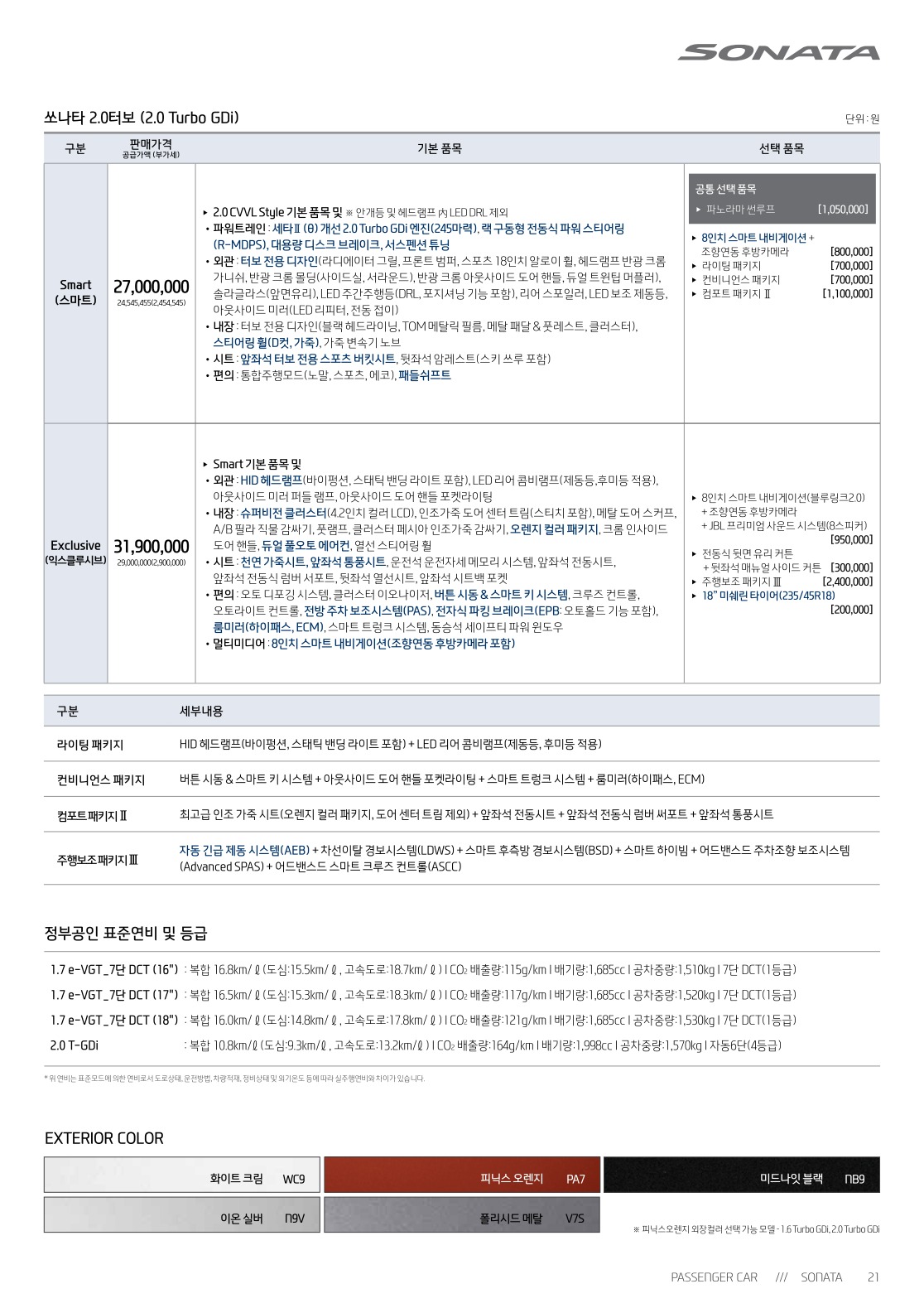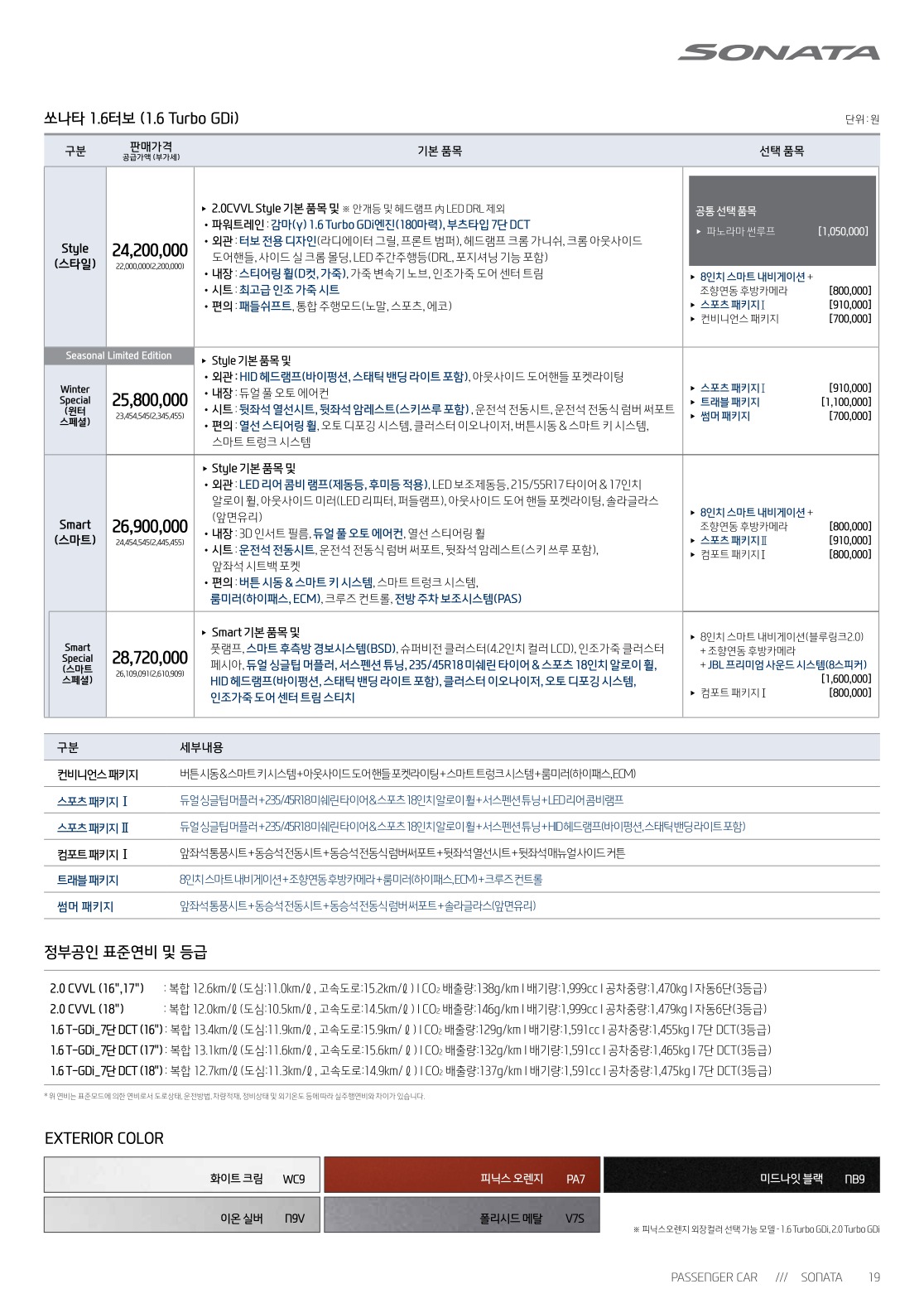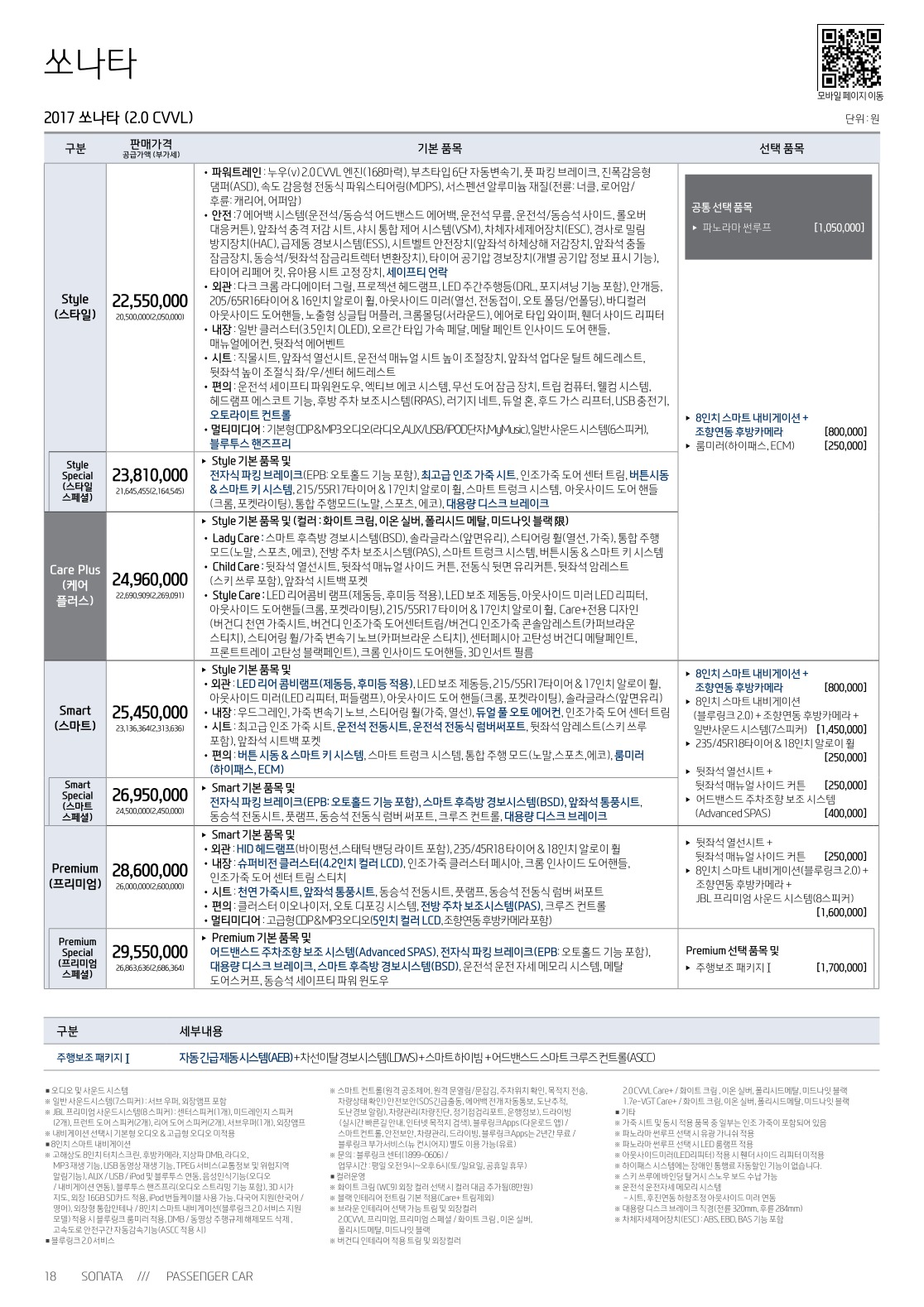 2017년 3월 쏘나타 뉴라이즈 신차가격표