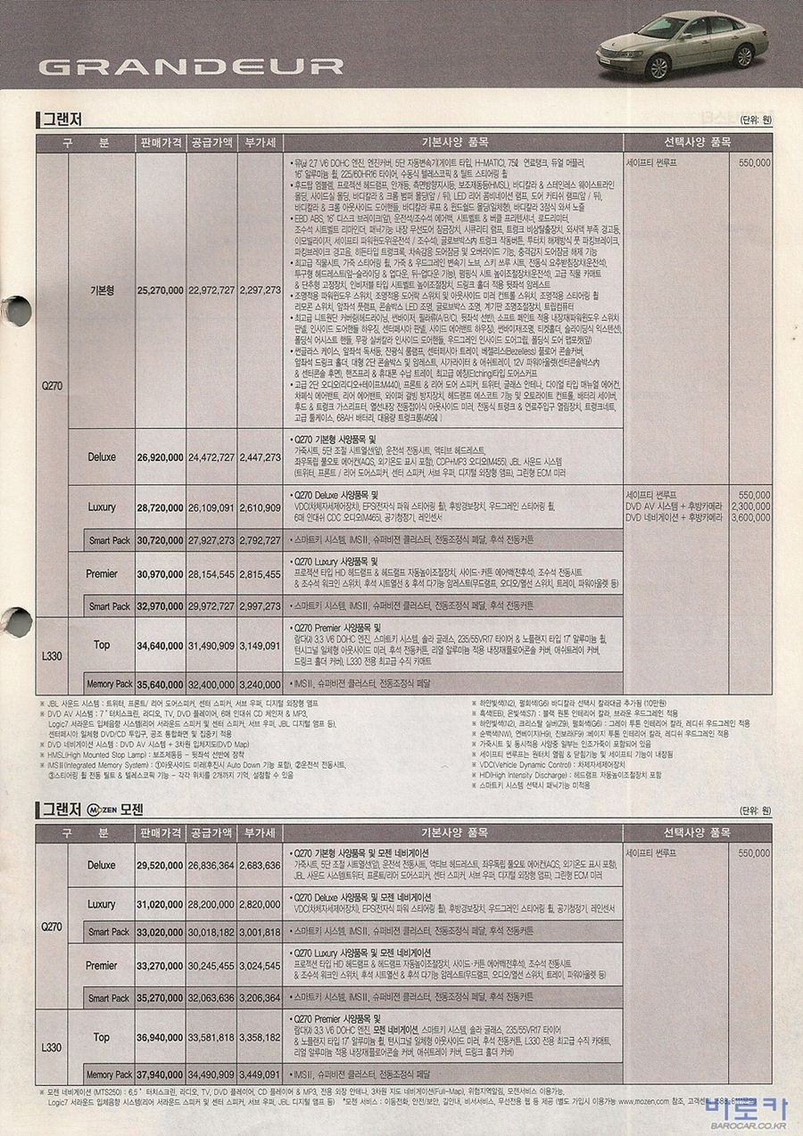 2005년 6월 뉴그랜져XG LPG 신차가격표