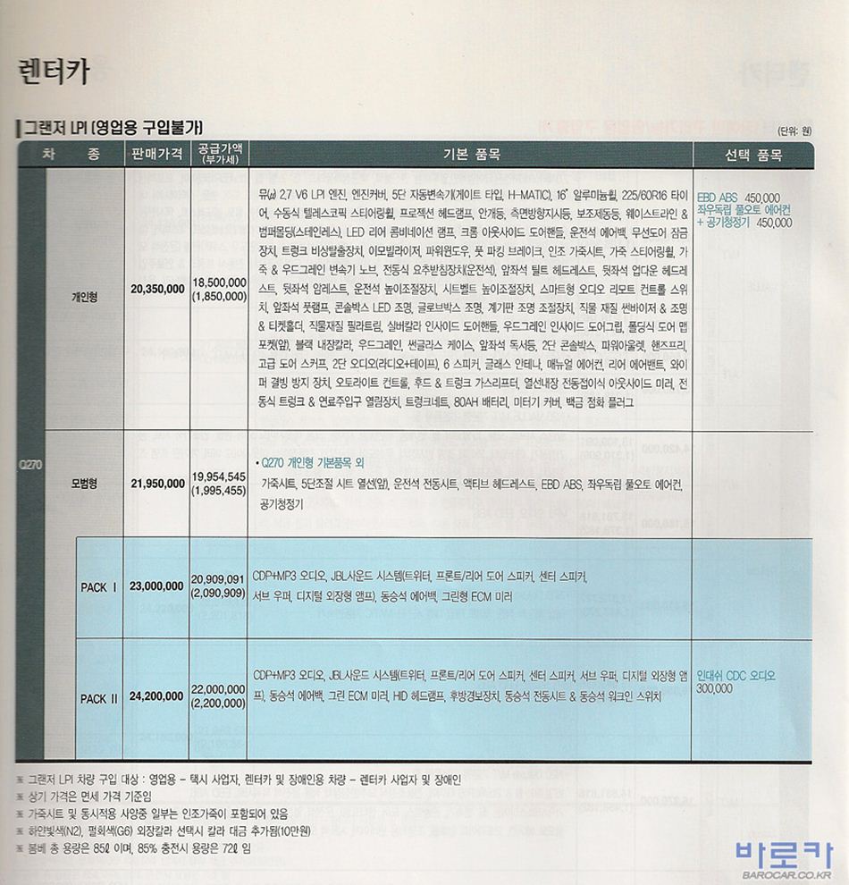 ※ 본 가격표의 모든 저작권은 해당 차량 제조사에 있습니다.