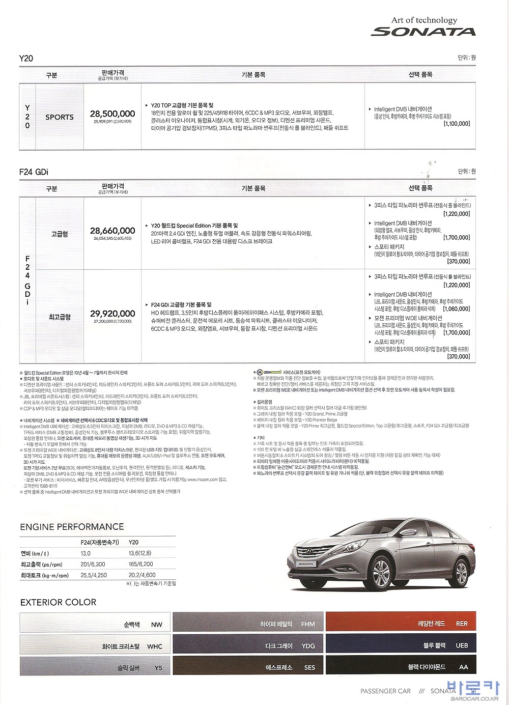 2010년 2월 YF쏘나타 신차가격표 (LPG포함)