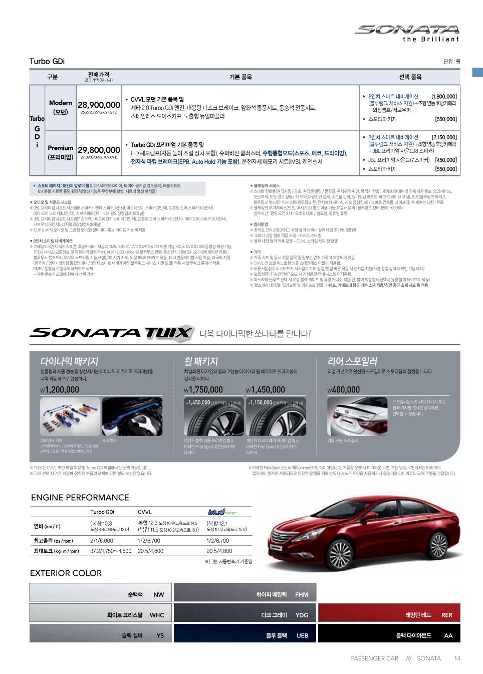 2012년 7월 YF쏘나타 신차가격표 (쏘나타 더 브릴리언트)