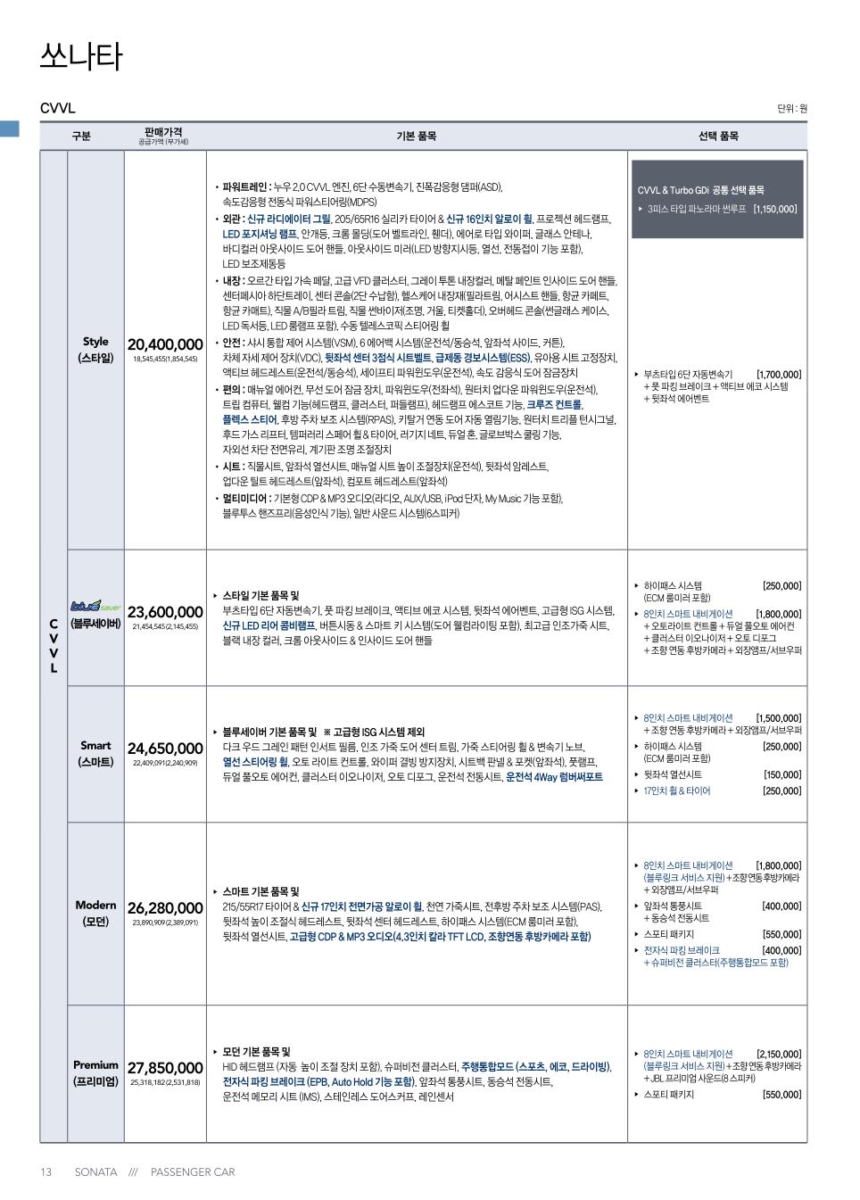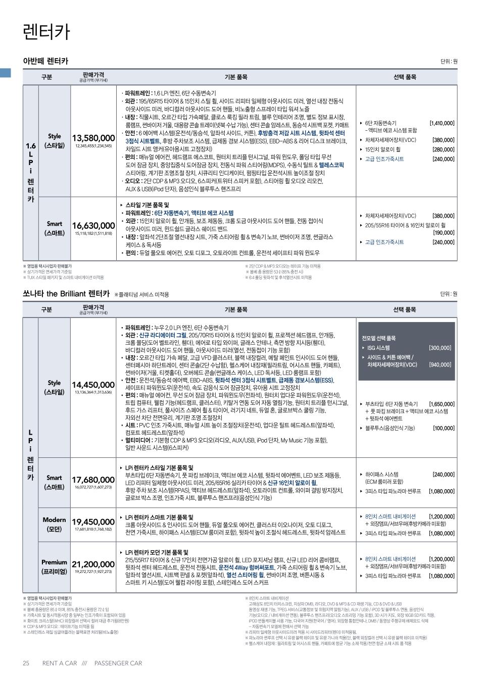 ※ 본 가격표의 모든 저작권은 해당 차량 제조사에 있습니다.