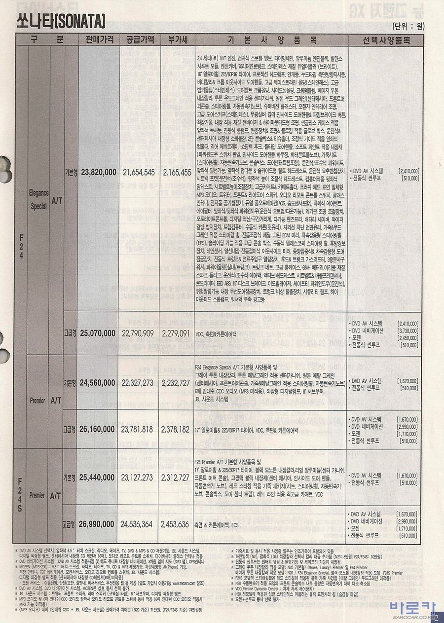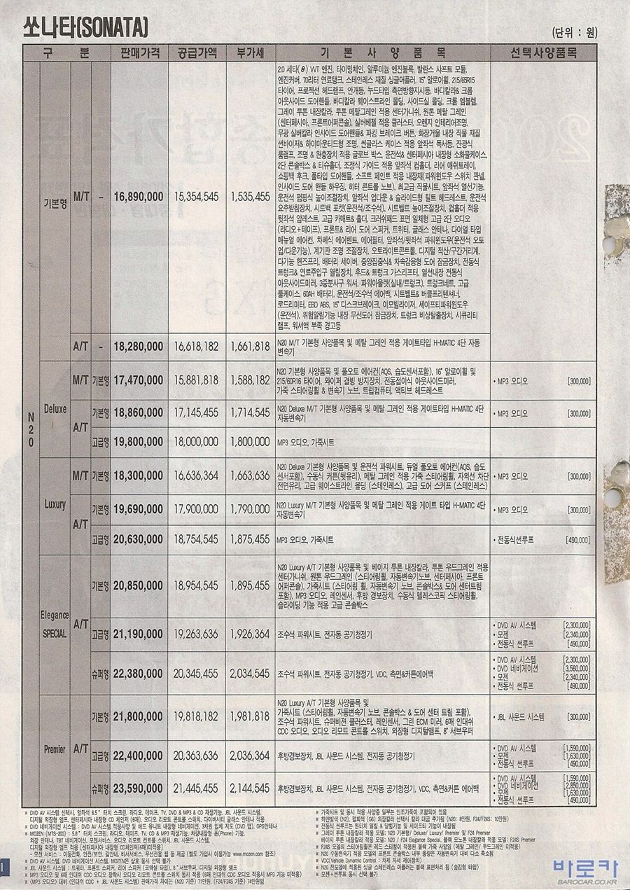 2005년 6월 뉴EF쏘나타 LPG 신차가격표
