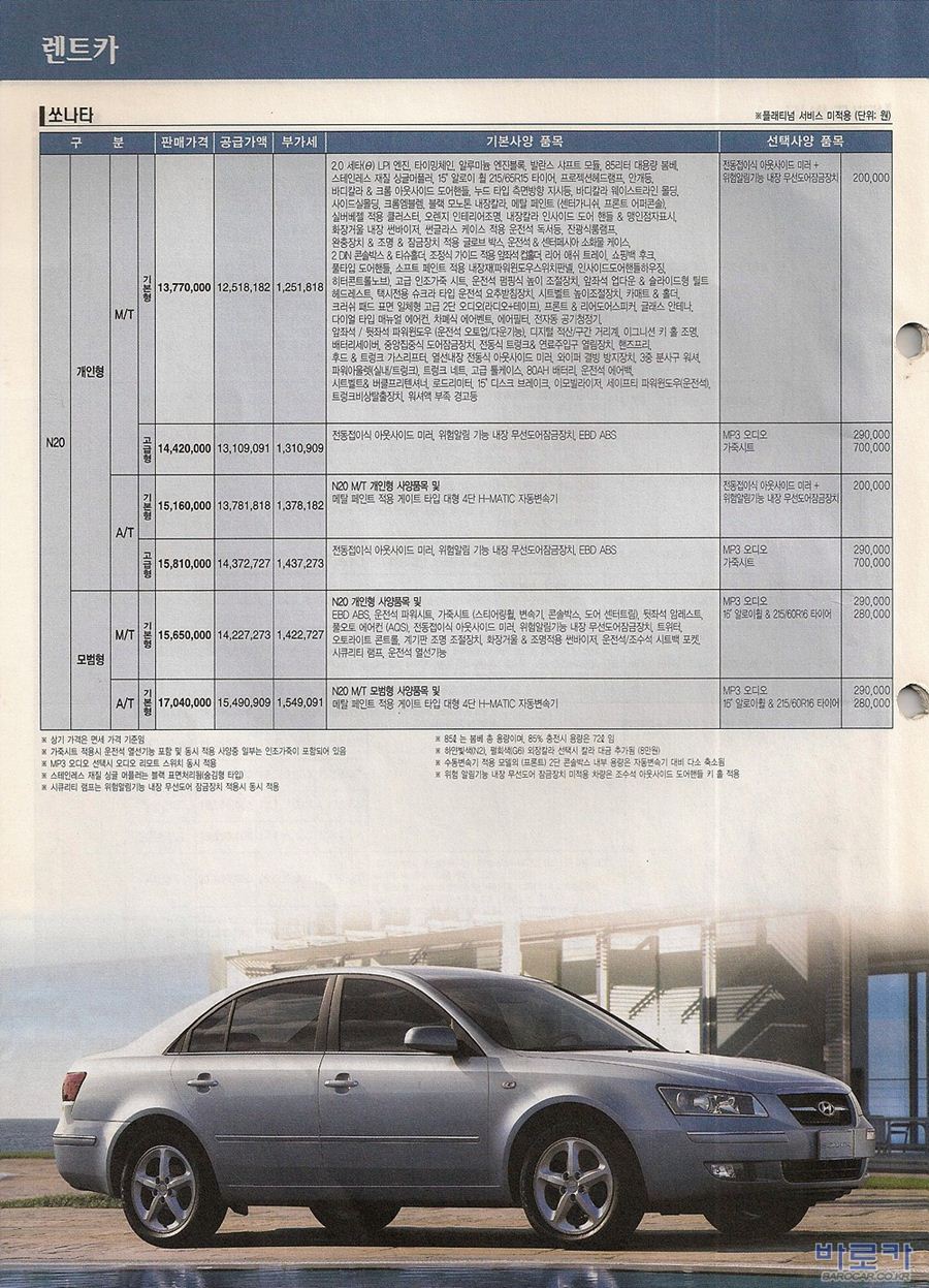 2005년 6월 NF쏘나타 LPG 신차가격표