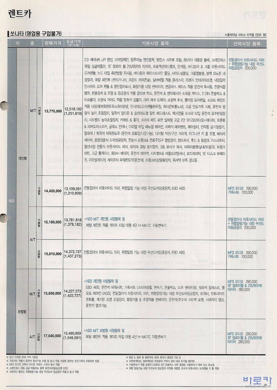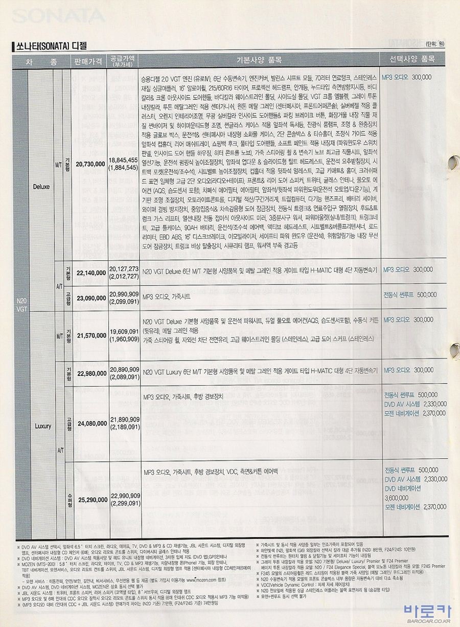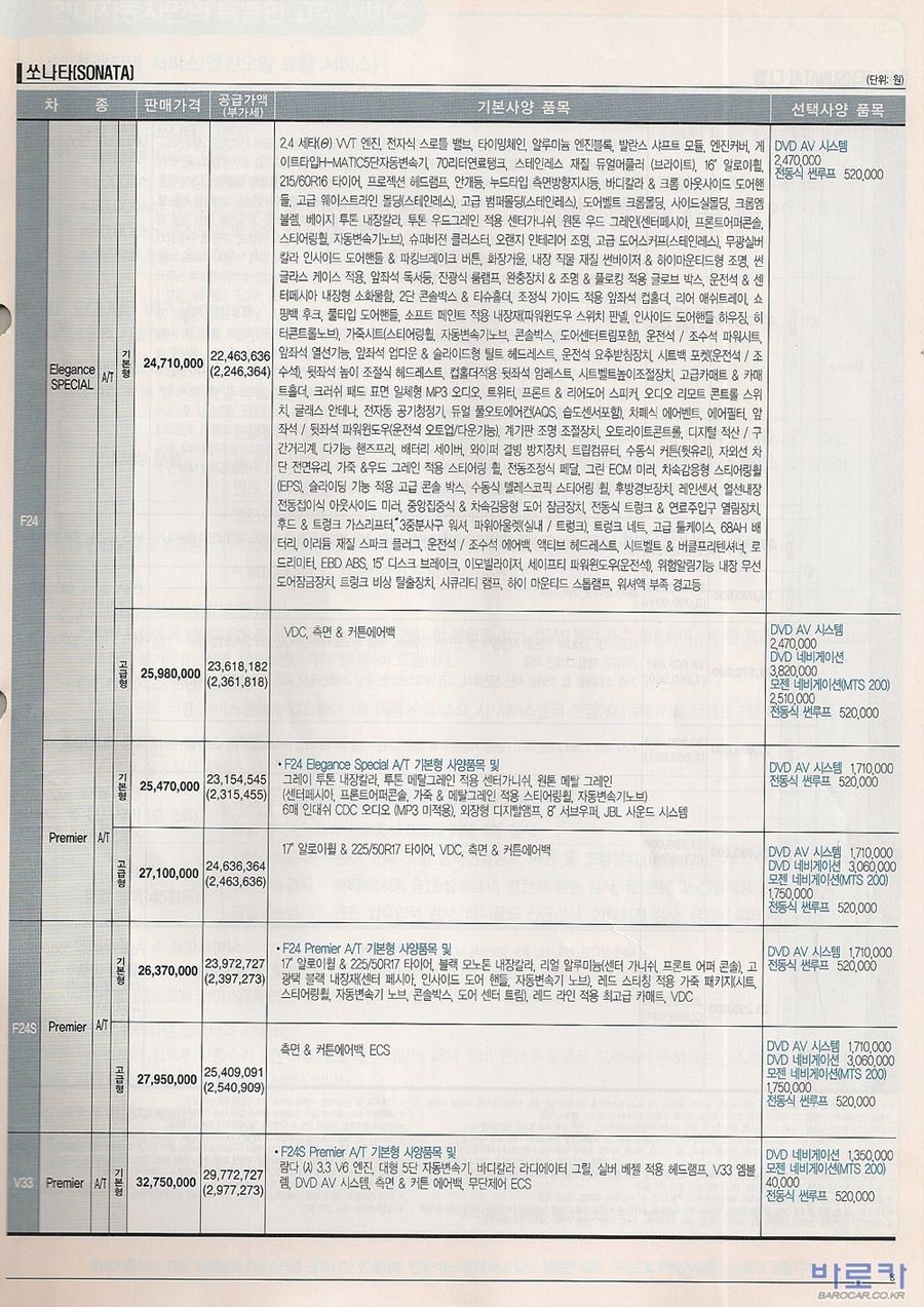 2005년 6월 NF쏘나타 LPG 신차가격표