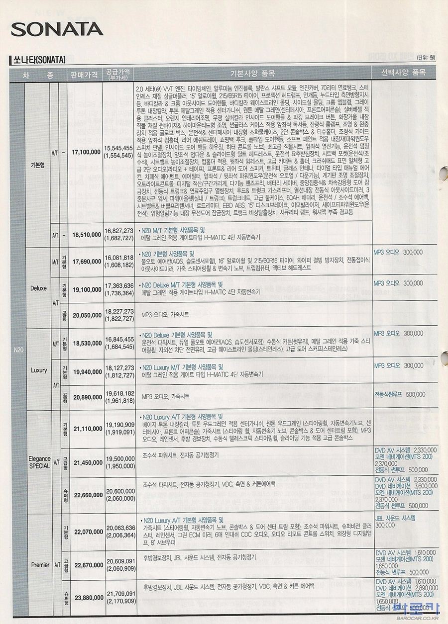 2006년 1월 NF쏘나타 신차가격표 (LPG포함)