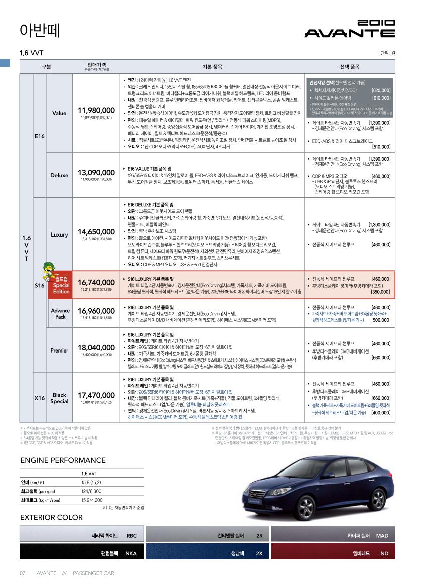 2010년 6월 아반떼HD LPi 하이브리드 신차가격표