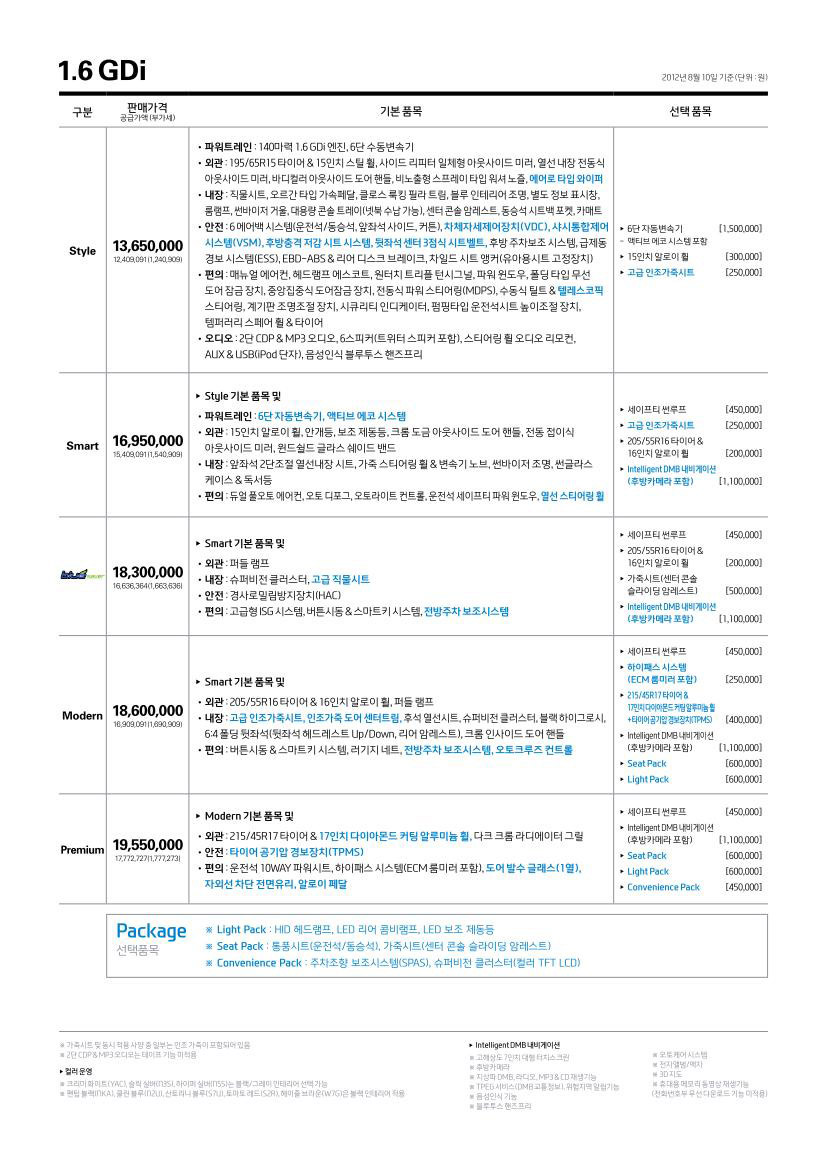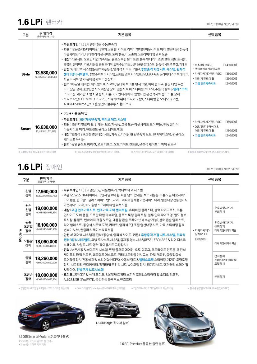 2012년 8월 아반떼MD 신차가격표
