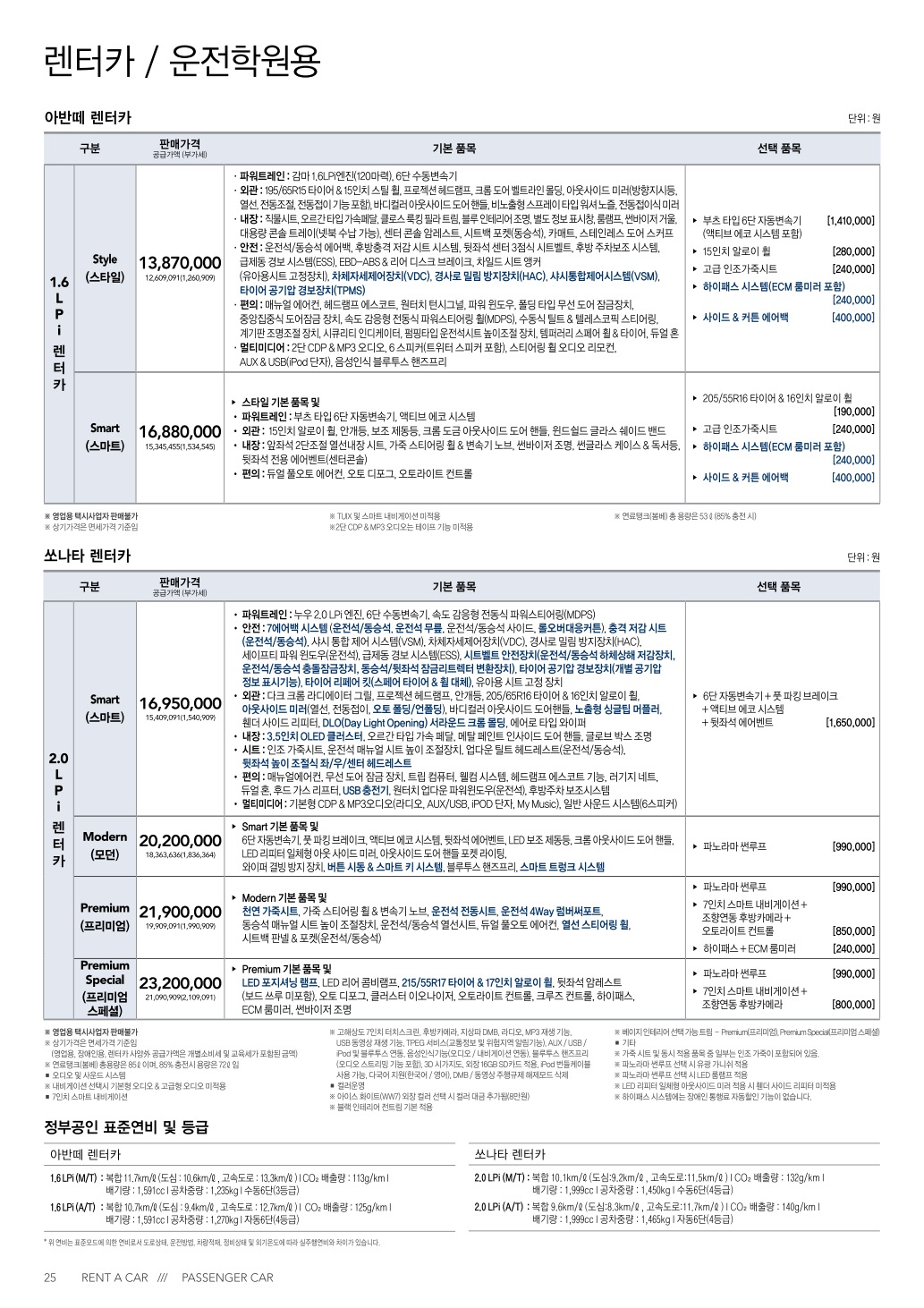 ※ 본 가격표의 모든 저작권은 해당 차량 제조사에 있습니다.