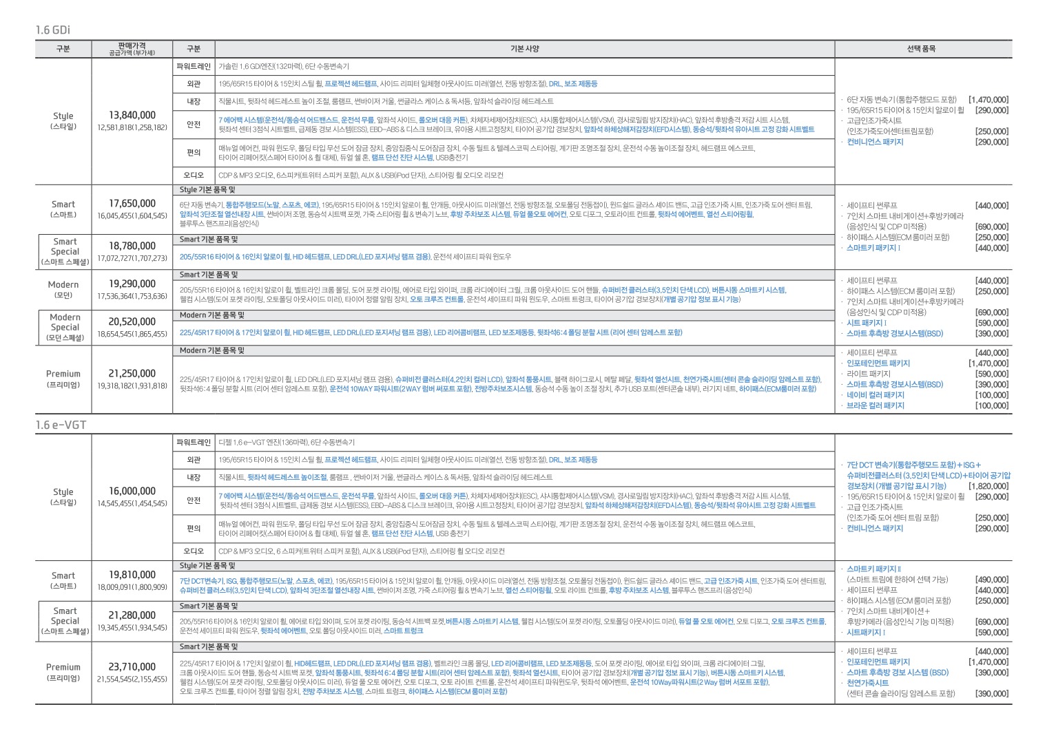 ※ 본 가격표의 모든 저작권은 해당 차량 제조사에 있습니다.
