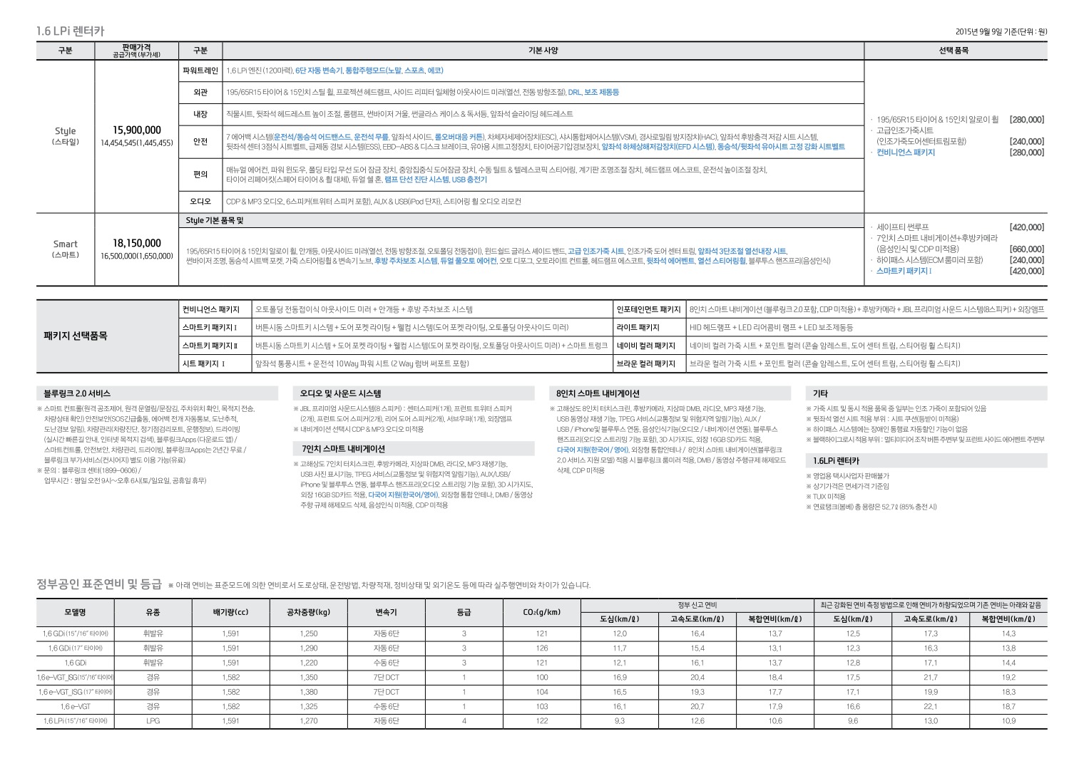2015년 9월 아반떼 신차가격표