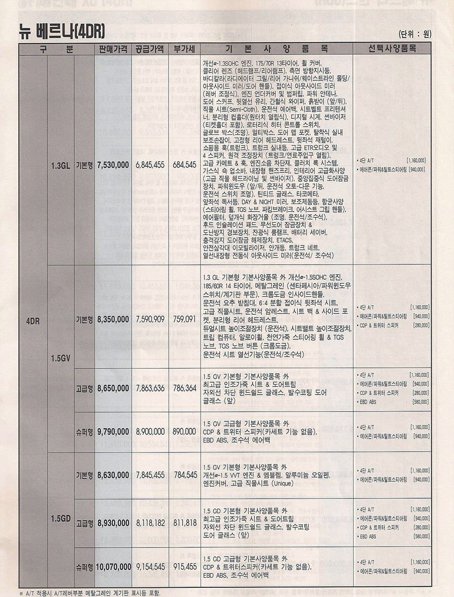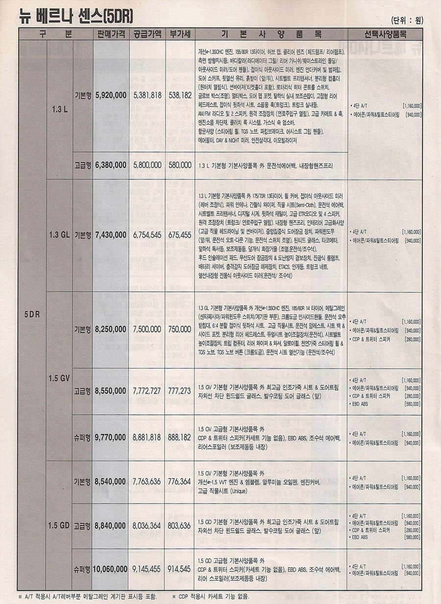 ※ 본 가격표의 모든 저작권은 해당 차량 제조사에 있습니다.