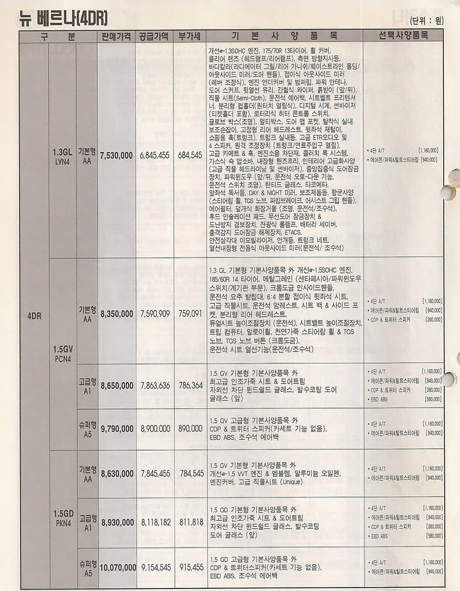 ※ 본 가격표의 모든 저작권은 해당 차량 제조사에 있습니다.