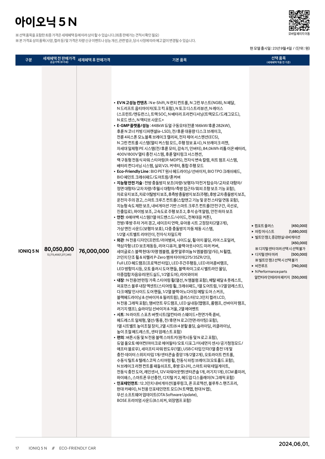 2024년 6월 아이오닉5 N 신차가격표
