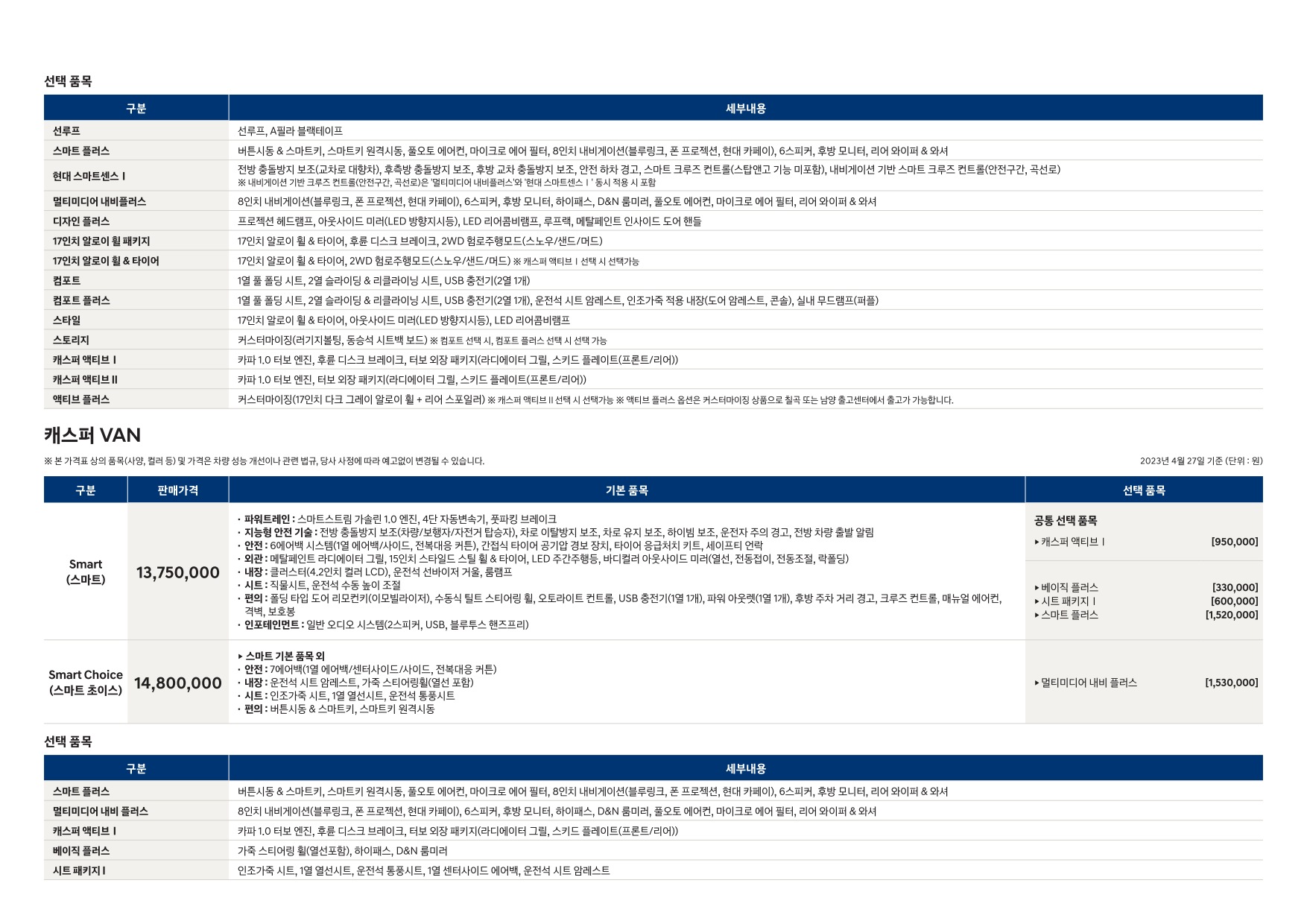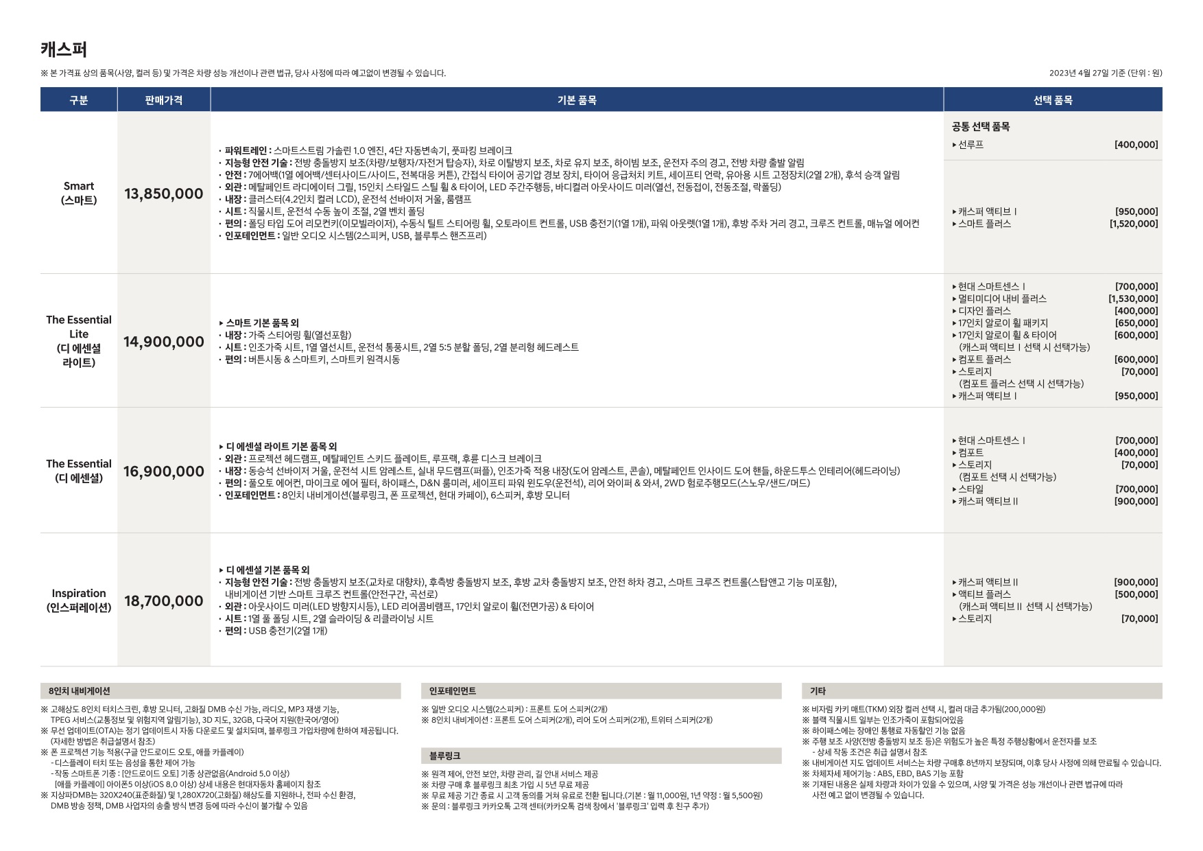 2023년 4월 캐스퍼 신차가격표 (2023년형 캐스퍼 출시)