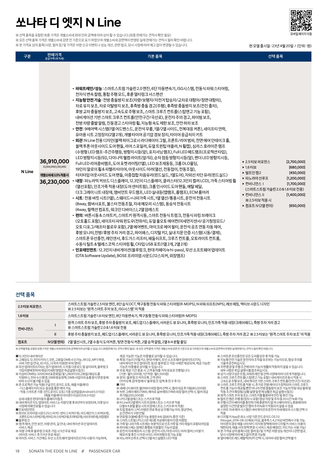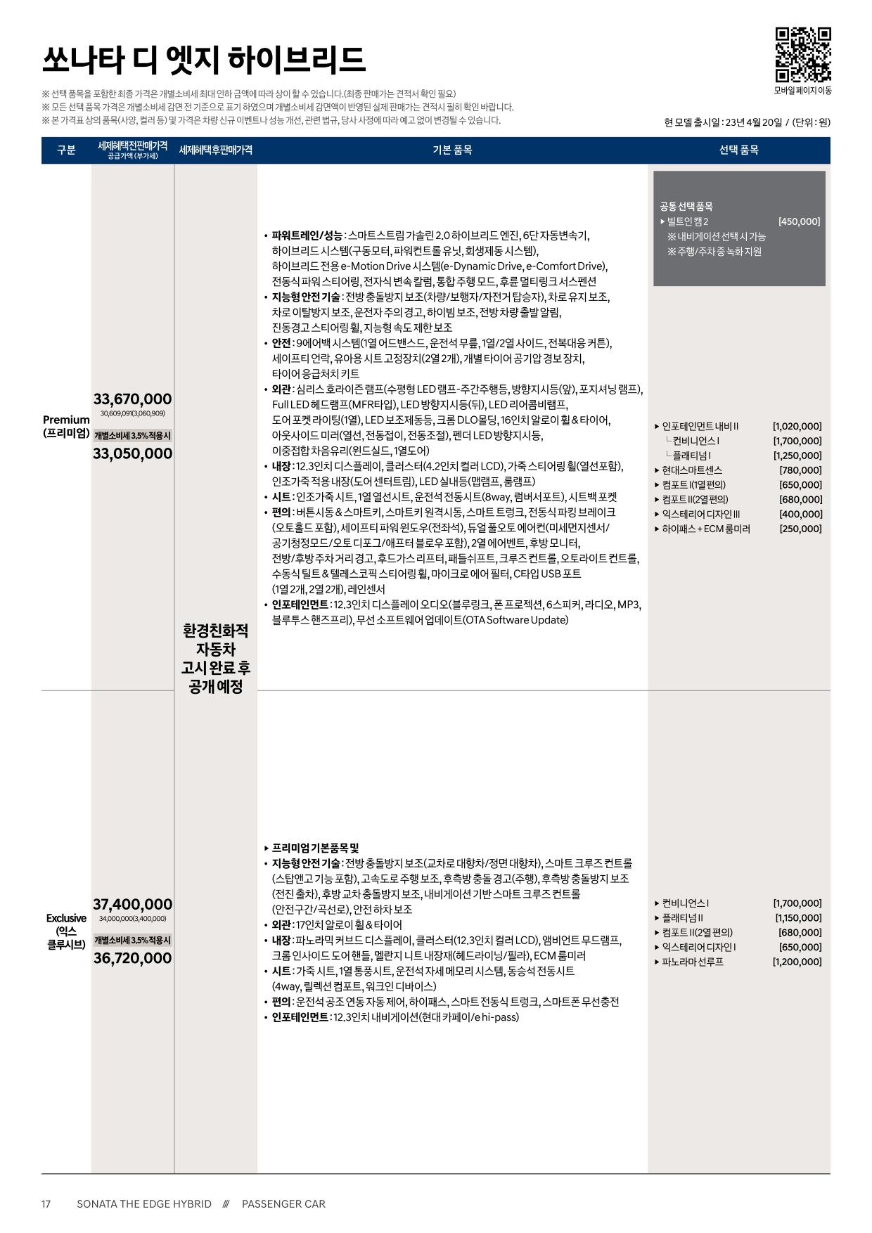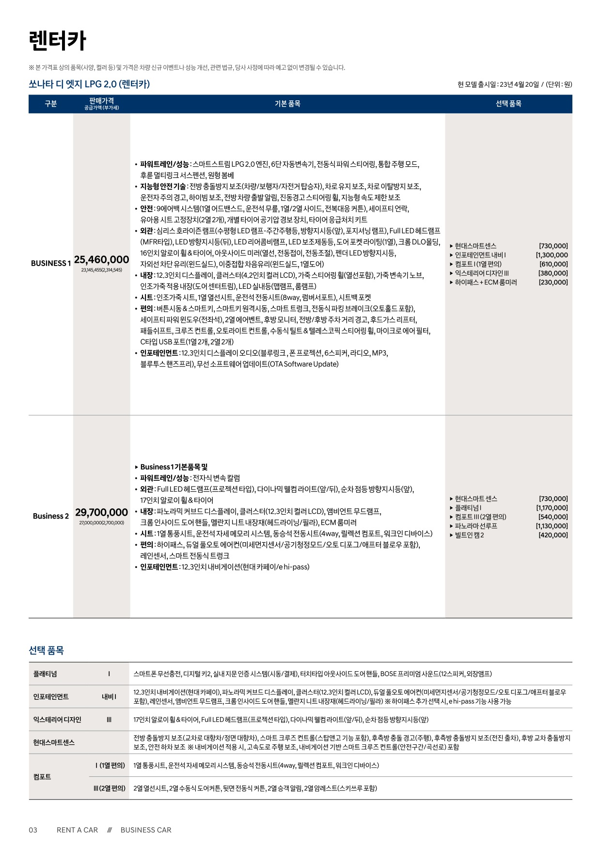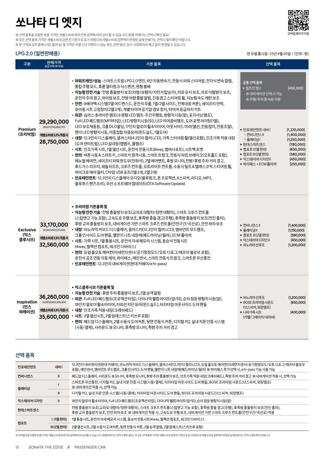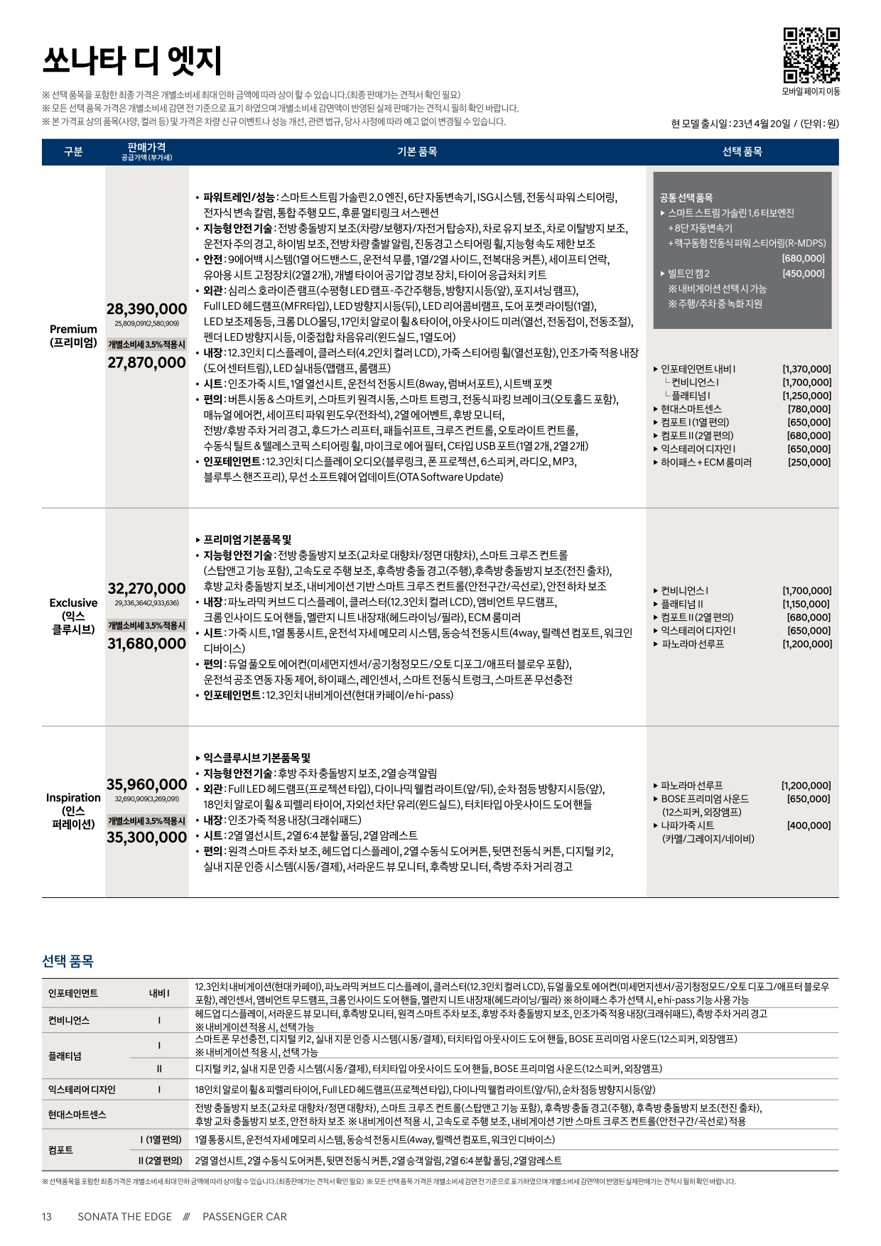 2023년 4월 쏘나타 디 엣지 (DN8 페이스리프트) 신차가격표. 쏘나타디엣지 휘발류,LPG,N라인,하이브리드 신차가격표
