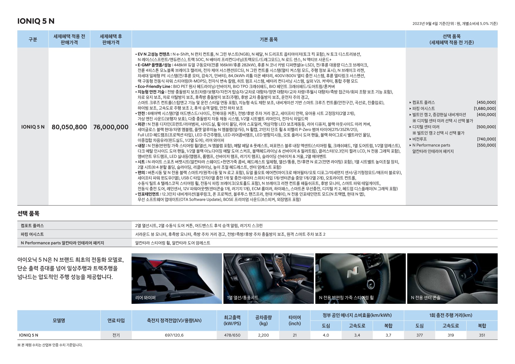 2023년 9월 아이오닉5N 신차가격표 (아이오닉5N 출시!)