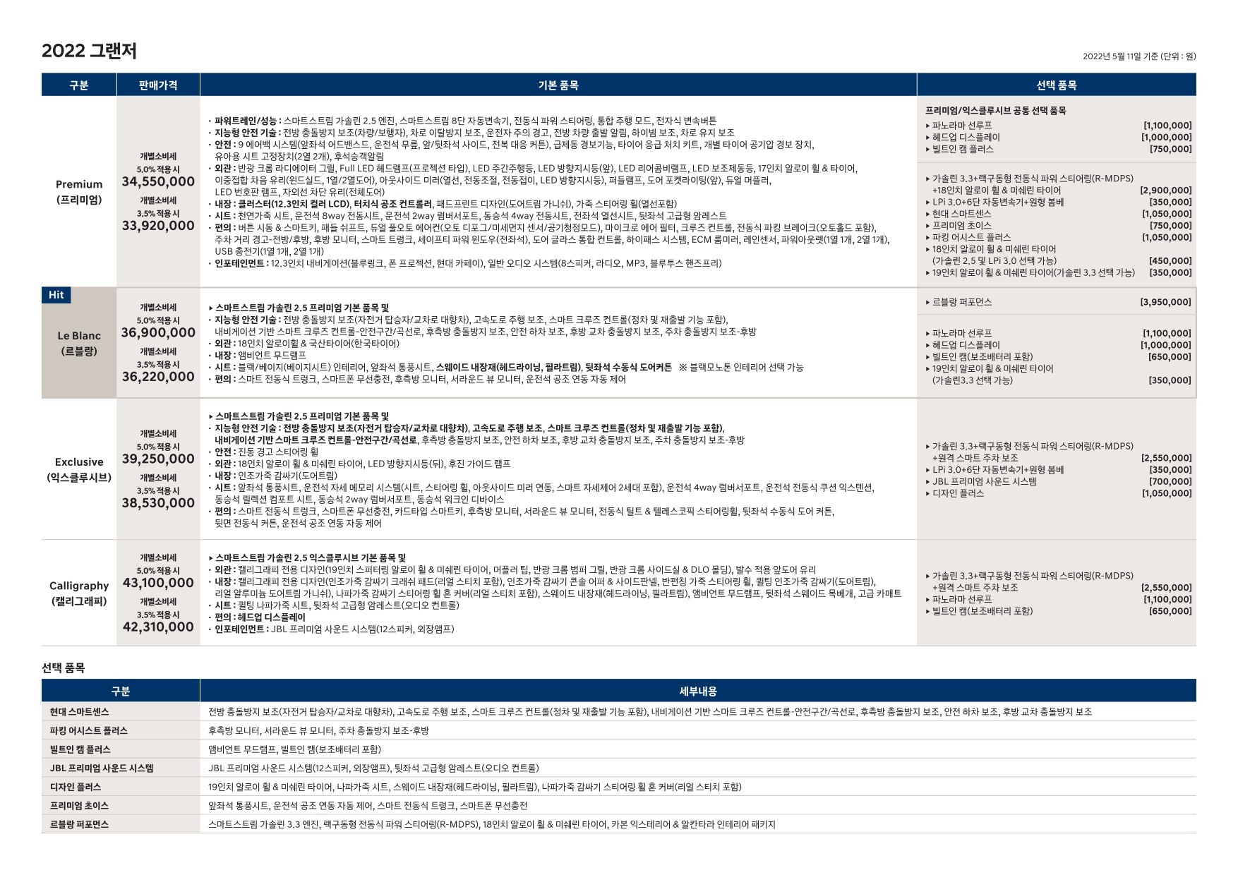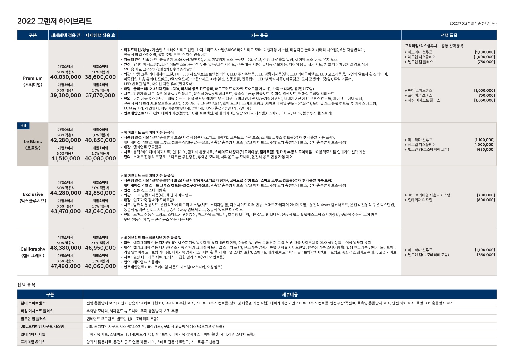 2022년 5월 그랜저 및 그랜저하이브리드 신차가격표 (2022년형 그랜저 출시)