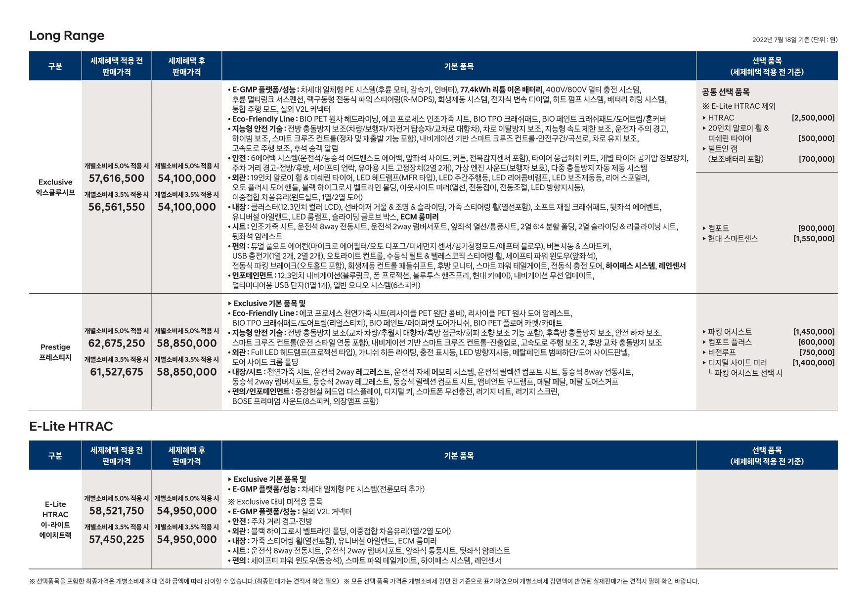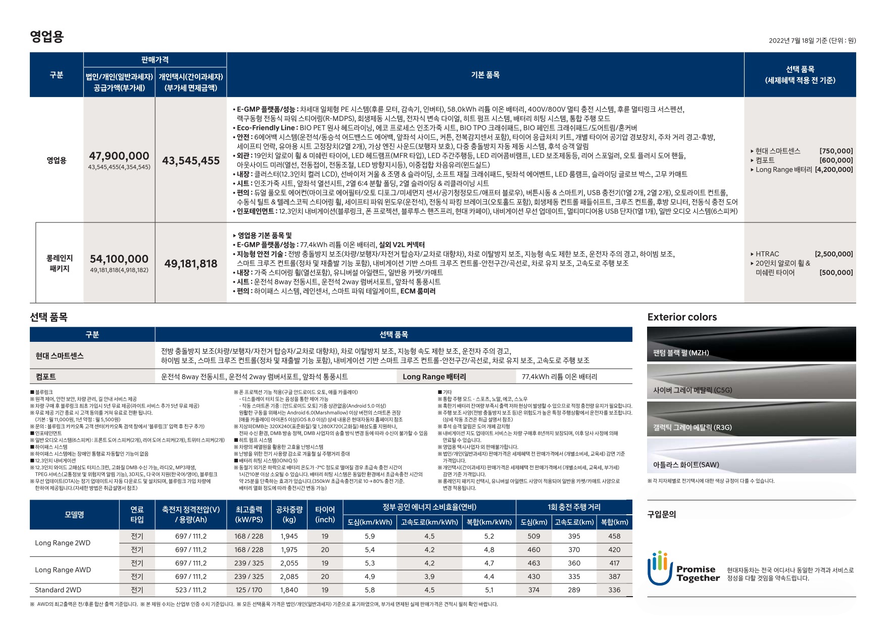 2022년 7월 아이오닉5 신차가격표 (2023년형 아이오닉5 출시)