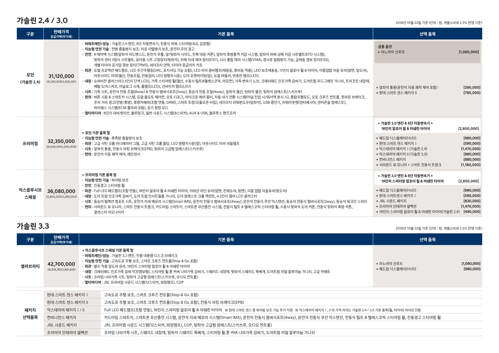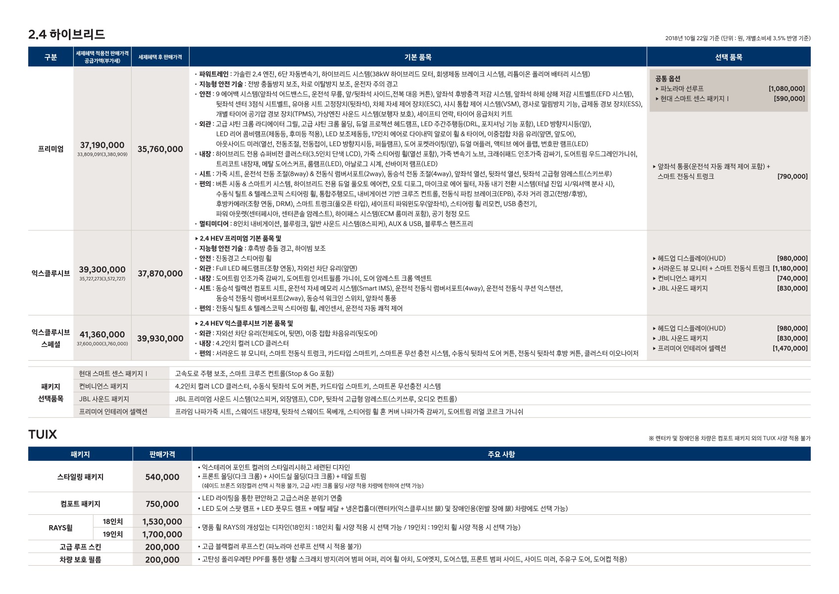 2018년 10월 그랜저 신차가격표 (2019년형 그랜저)
