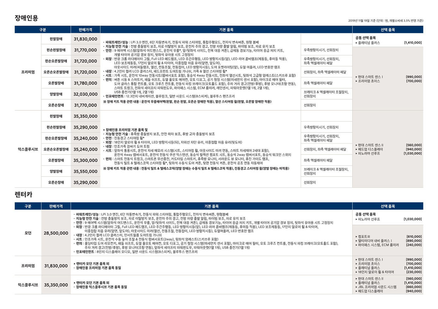 ※ 본 가격표의 모든 저작권은 해당 차량 제조사에 있습니다.