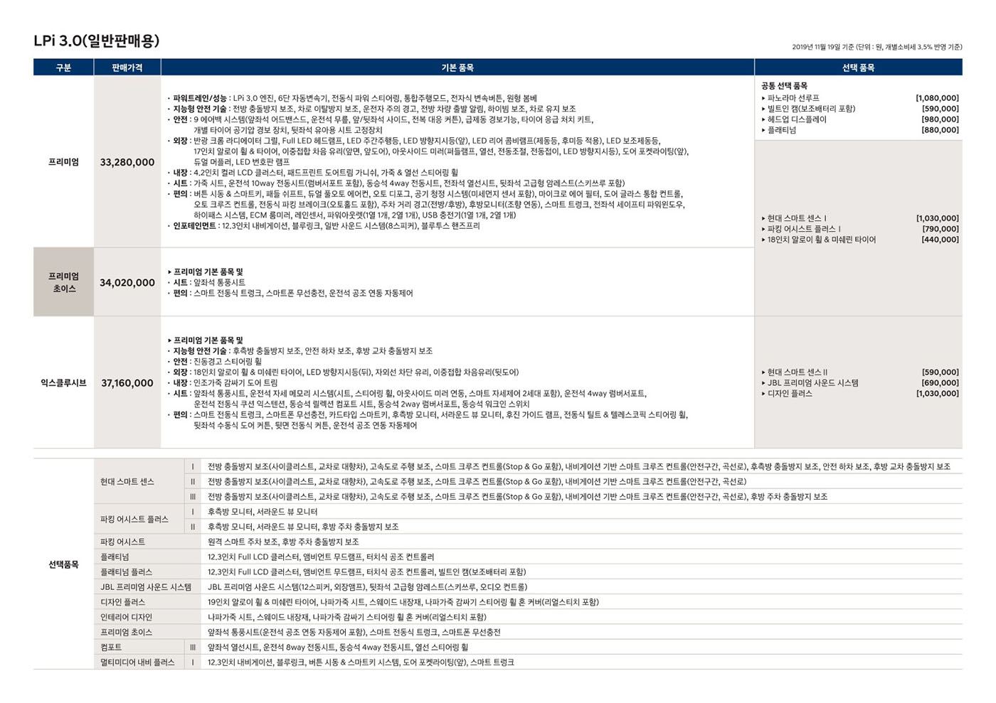 2019년 11월 그랜저 신차가격표 (더뉴 그랜저 출시)
