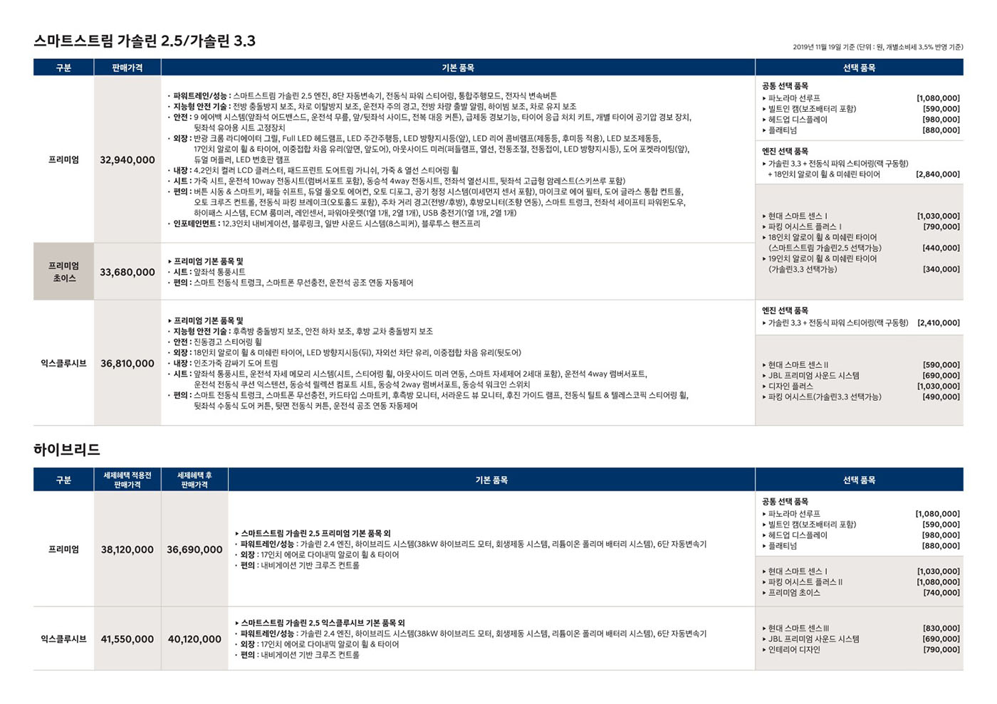 2020년 2월 그랜저 및 그랜저 하이브리드 신차가격표