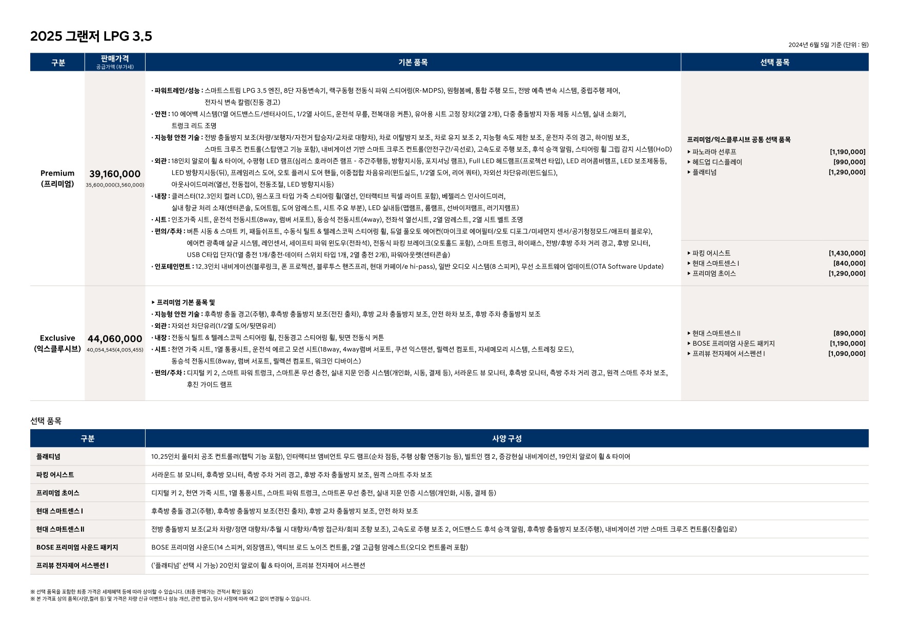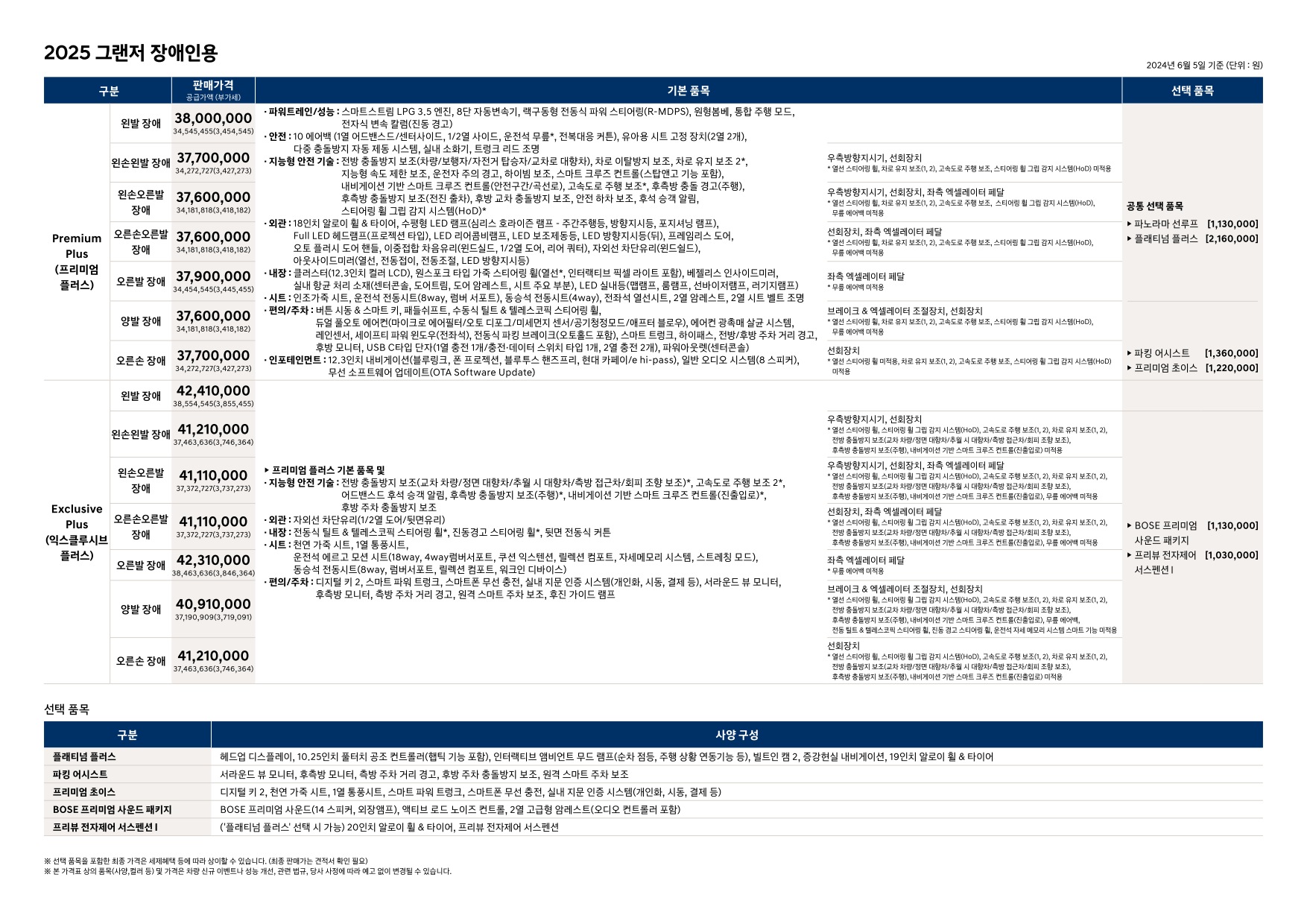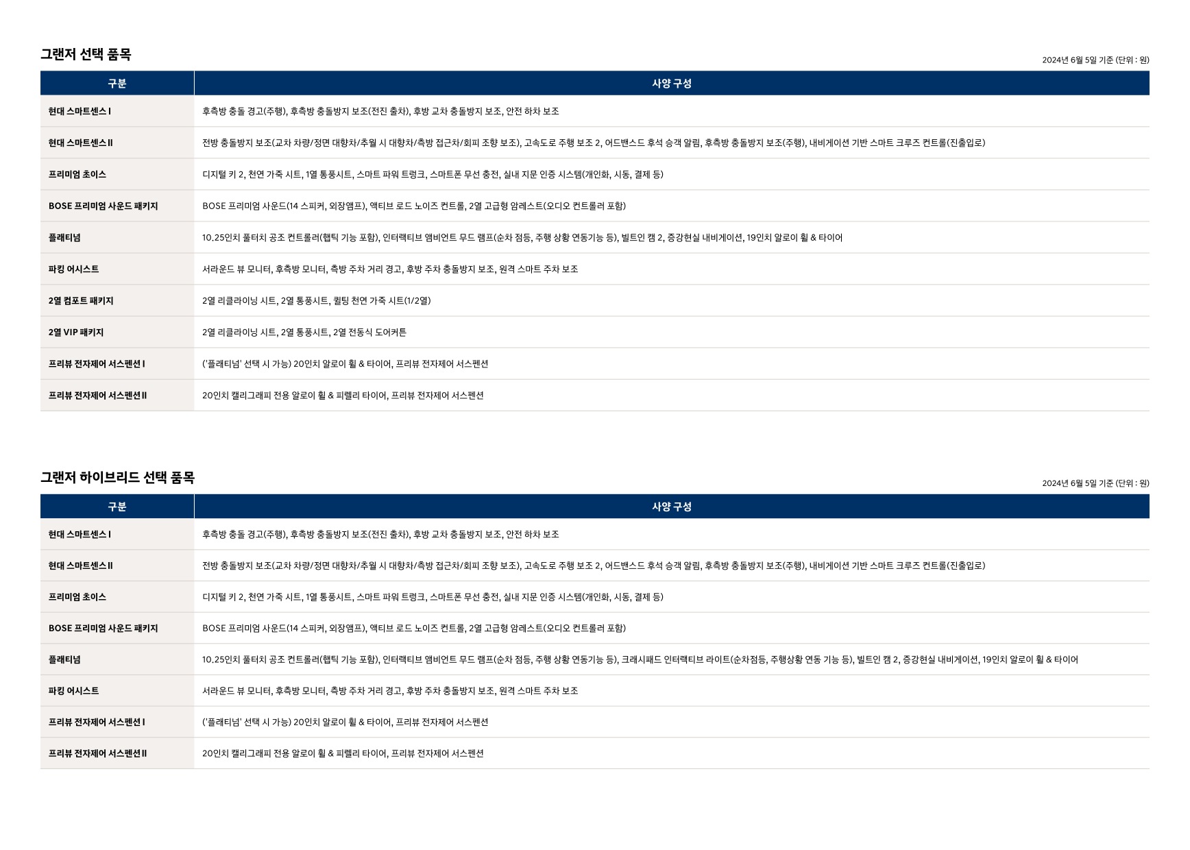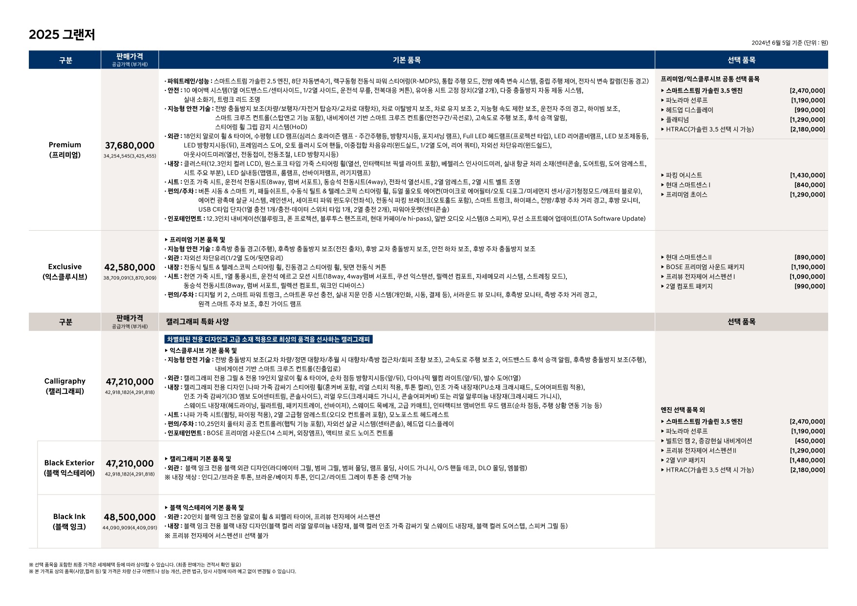 2024년 6월 그랜저 하이브리드 신차가격표 (2025년형 그랜저)