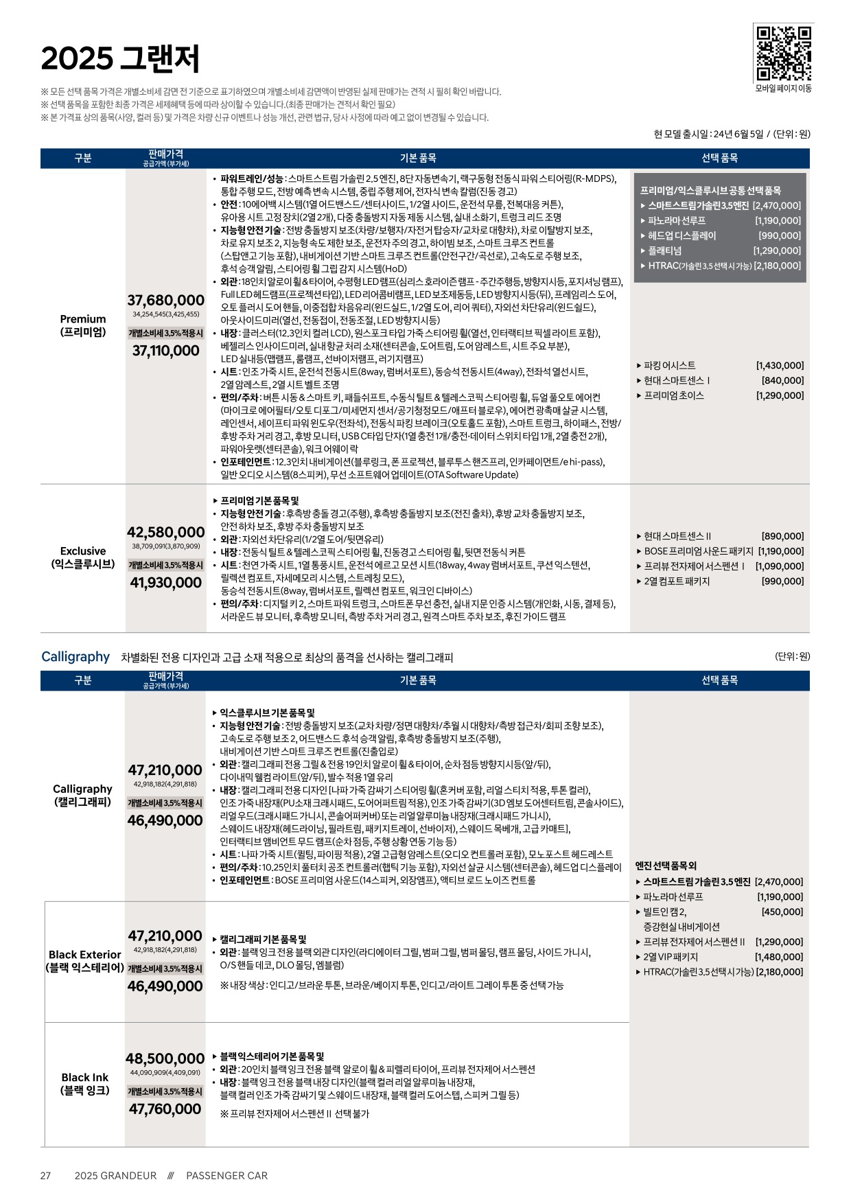 2024년 12월 그랜저 & 그랜저 하이브리드 신차가격표