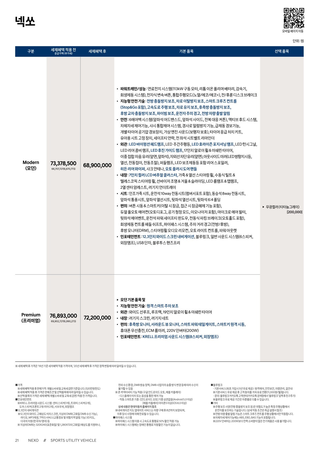 2021년 1월 넥쏘 신차가격표 (2021년형 출시)