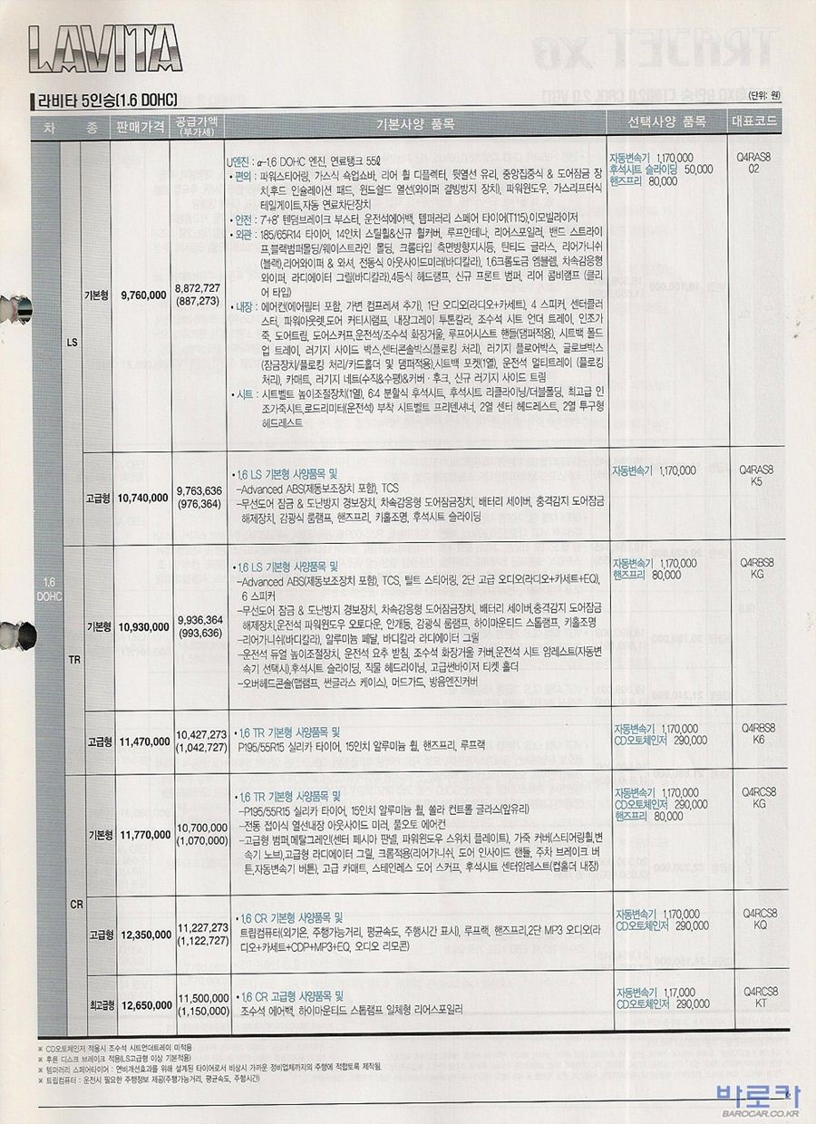 2006년 1월 라비타 신차가격표