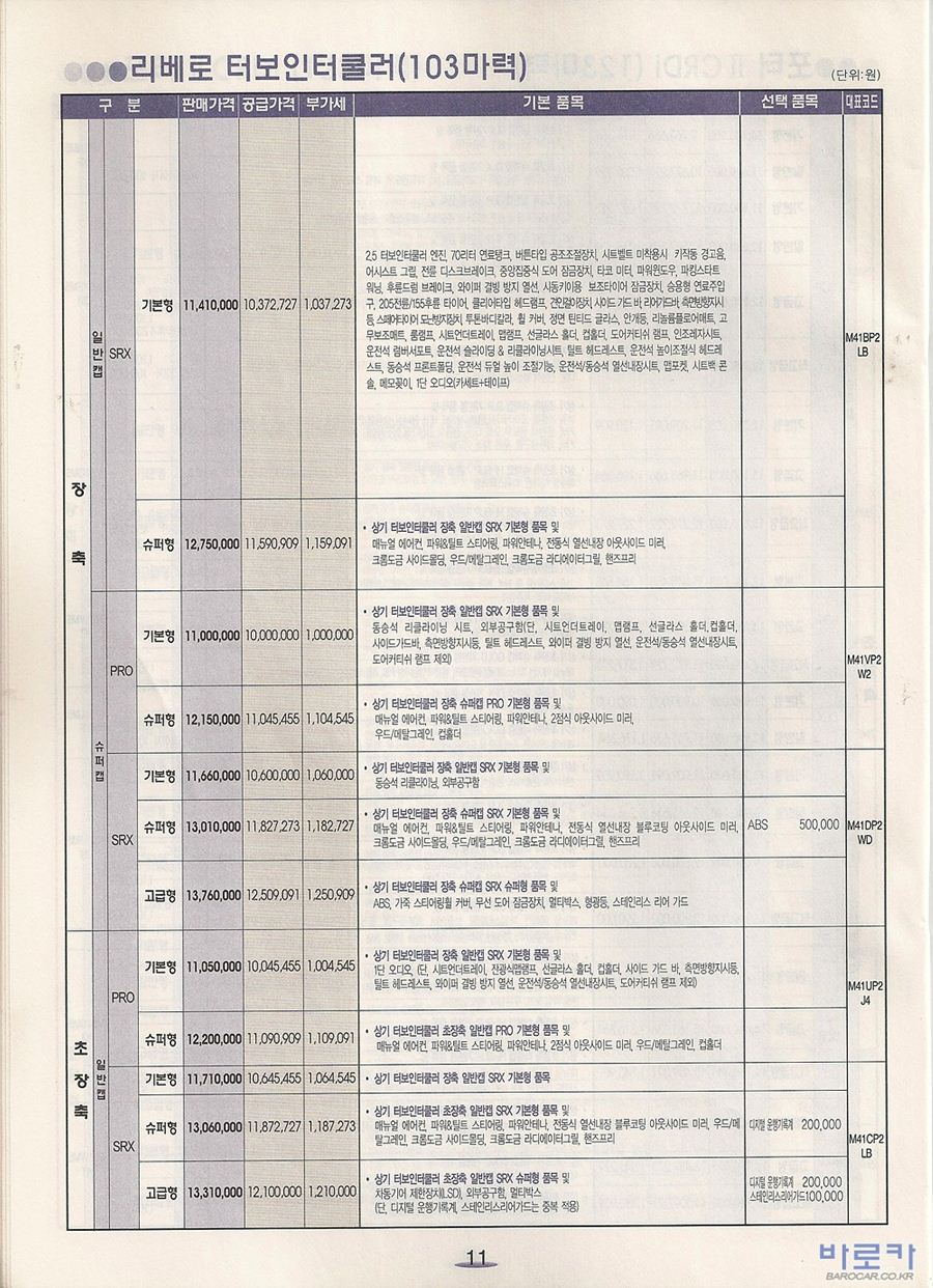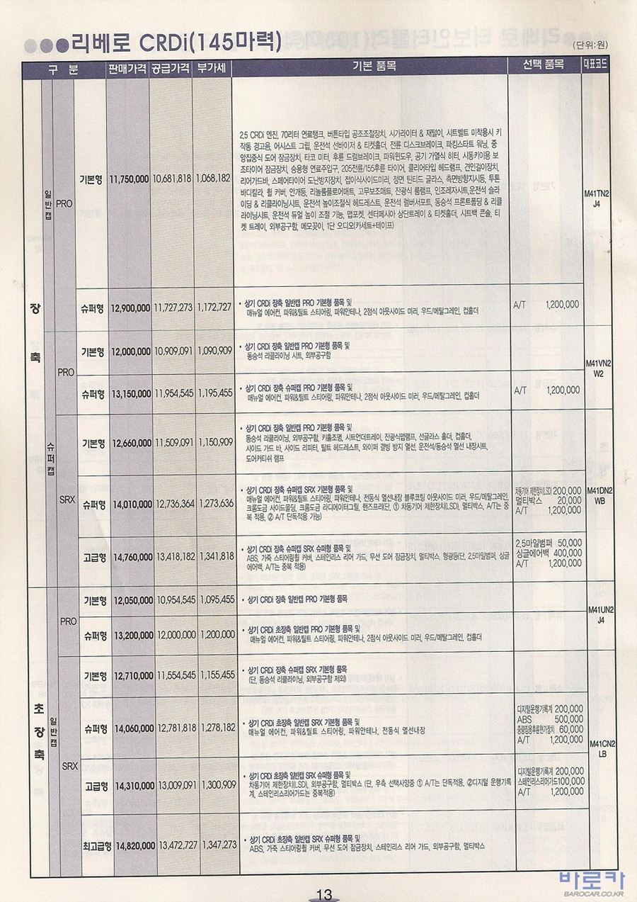 2006년 1월 리베로 신차가격표 (CRDi/터보인터쿨러)