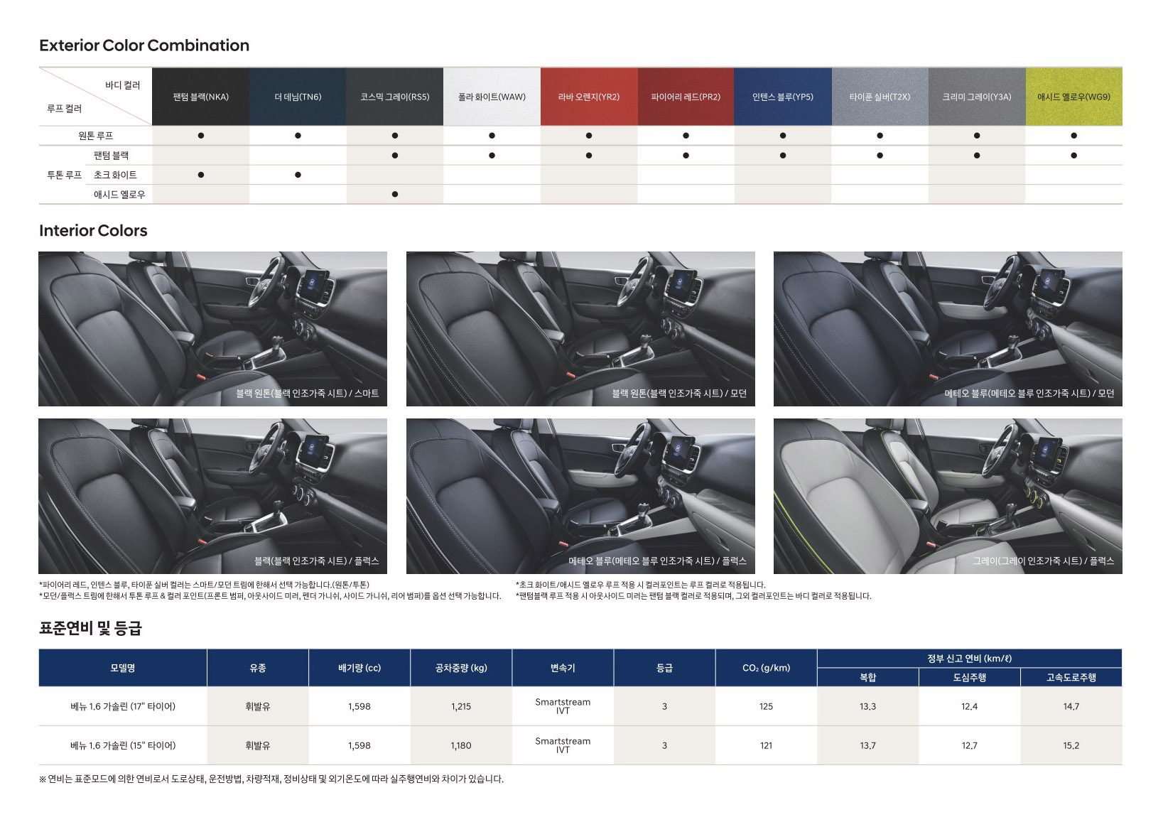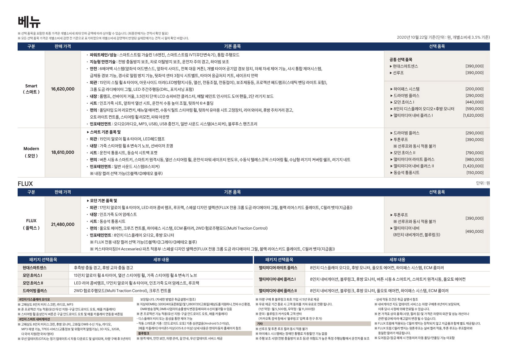 2020년 10월 베뉴 신차가격표 (2021년형 베뉴 출시)