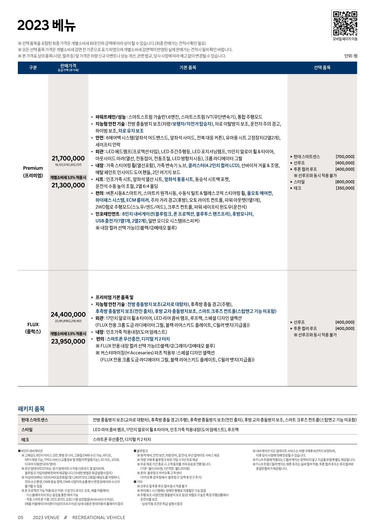 2022년 10월 베뉴 신차가격표 (2023년형 출시)