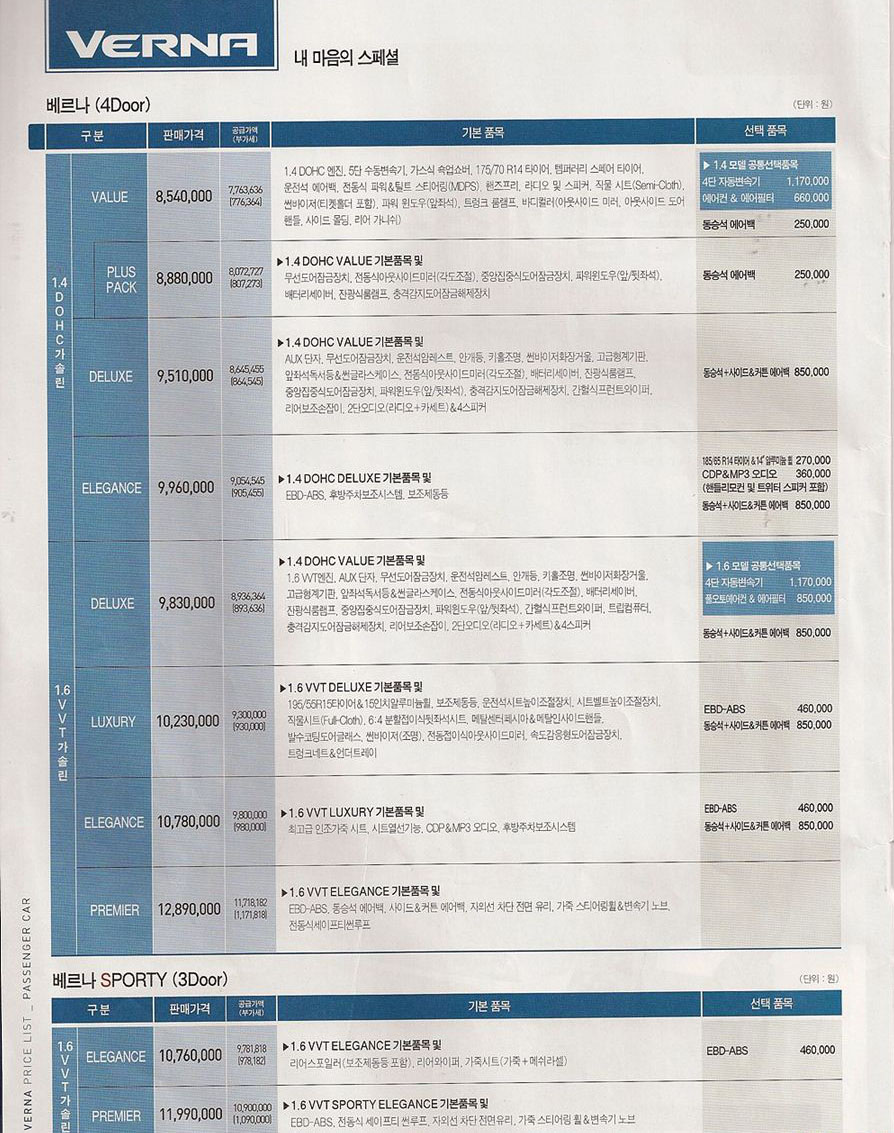 ※ 본 가격표의 모든 저작권은 해당 차량 제조사에 있습니다.
