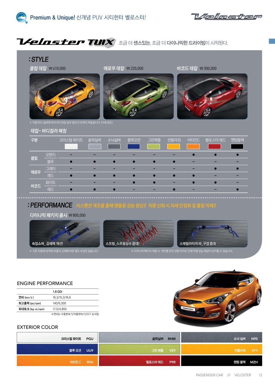 2012년 4월 벨로스터 신차가격표 (터보 T-GDi 모델 추가 신차가격표)