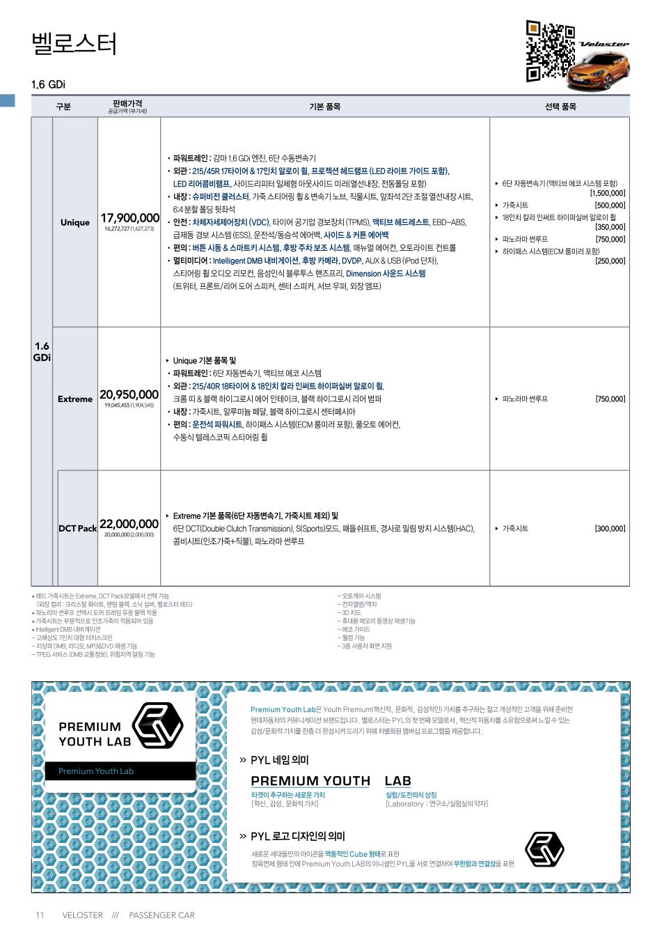 2011년 7월 벨로스터 신차가격표 (듀얼클러치 DCT 모델 추가)