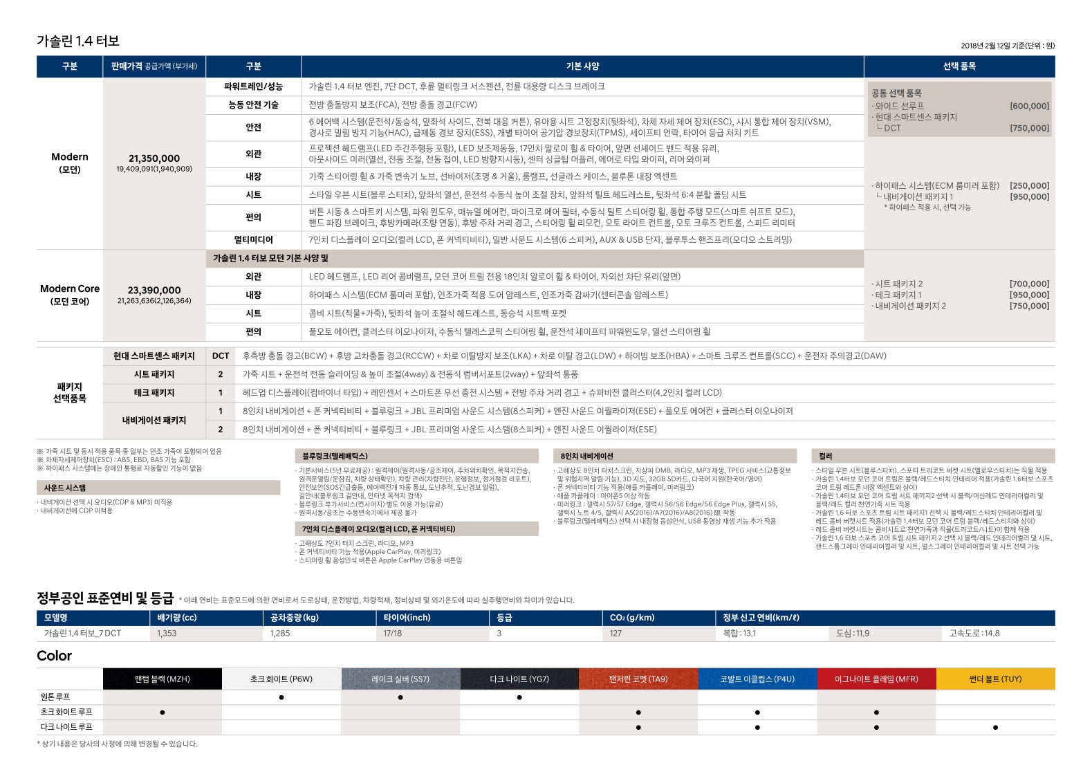 2018년 2월 벨로스터 신차가격표 (2세대 JS 신형 벨로스터)