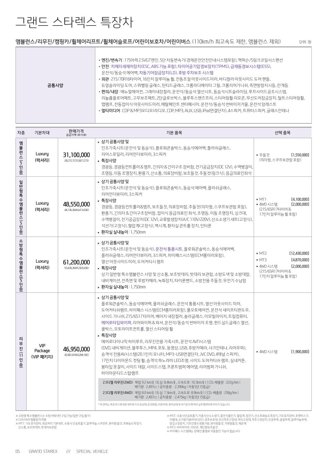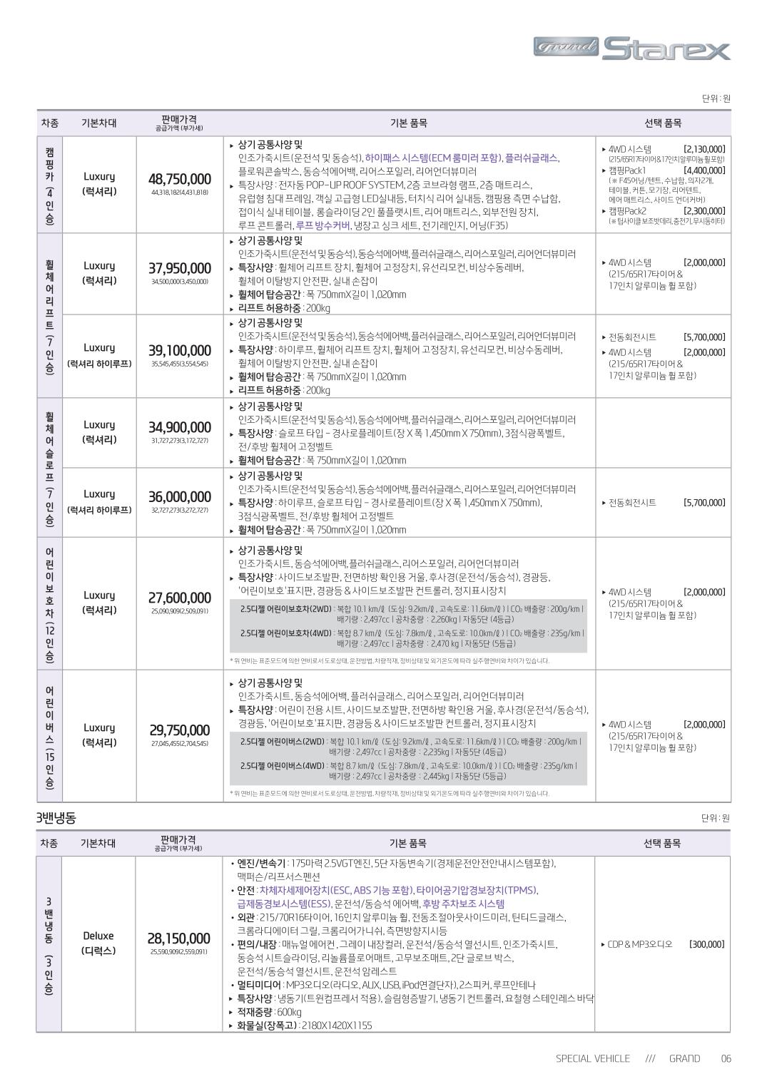 2015년 8월 그랜드스타렉스 신차가격표
