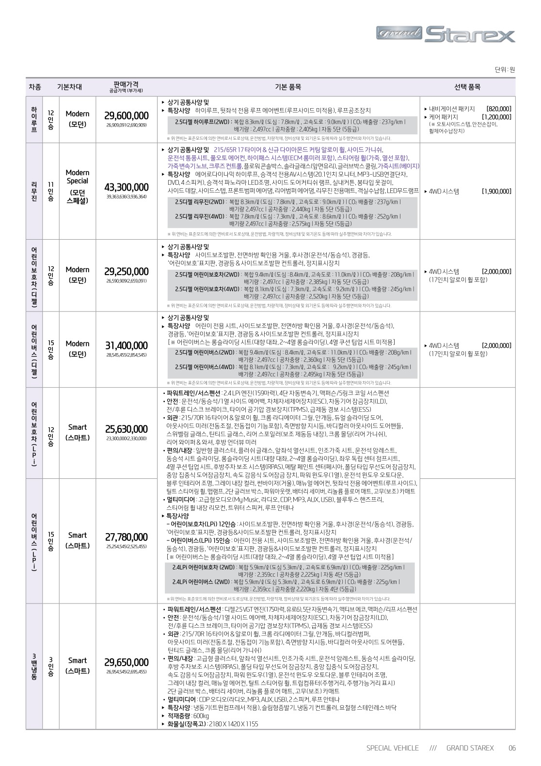 2017년 12월 더 뉴 그랜드스타렉스 신차가격표
